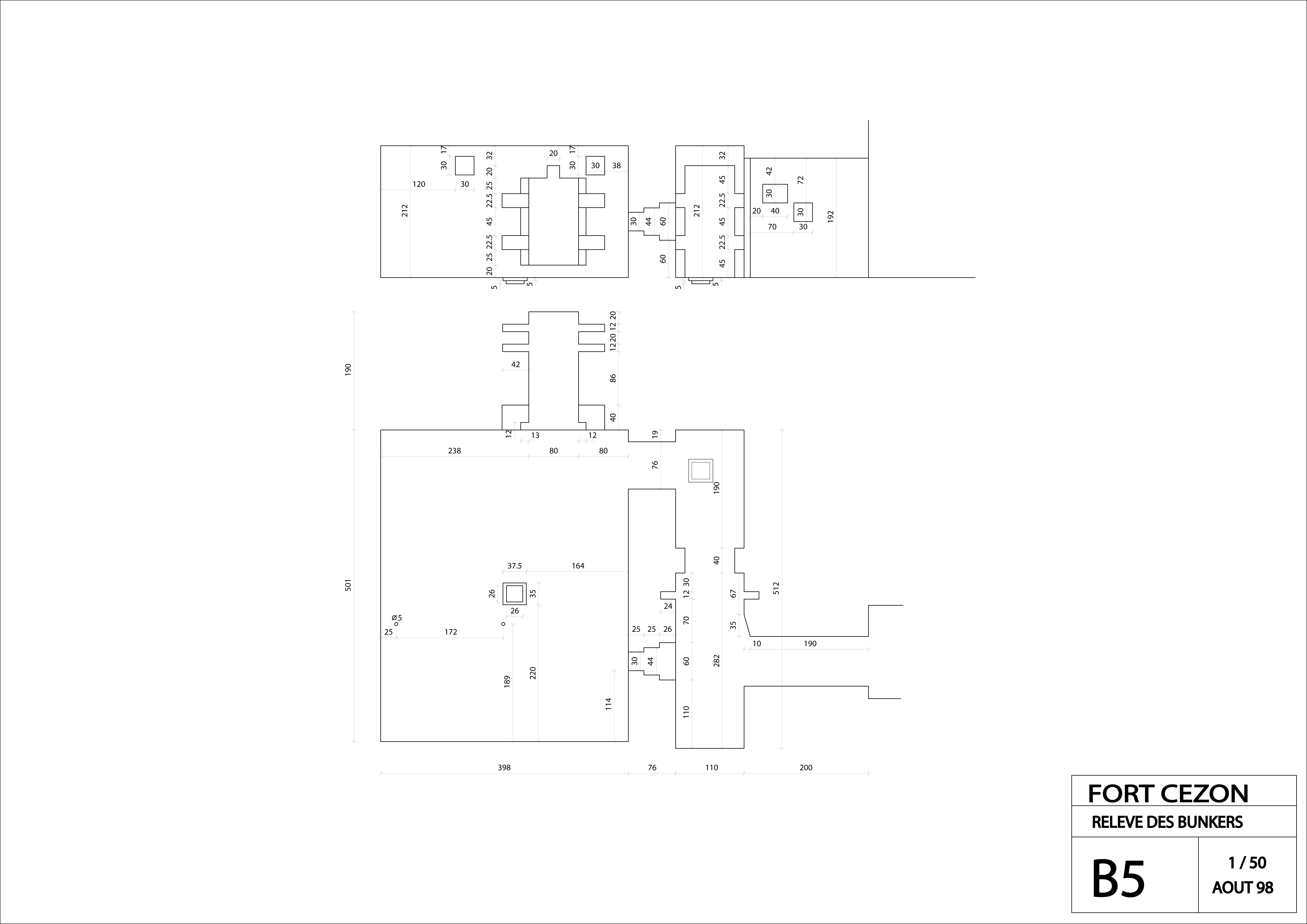 Landéda, île Cézon : plan et profil de l'abri pour un groupe de type 501 du fort Cézon (relevé : Association Cézon, août 1998)Immatriculation