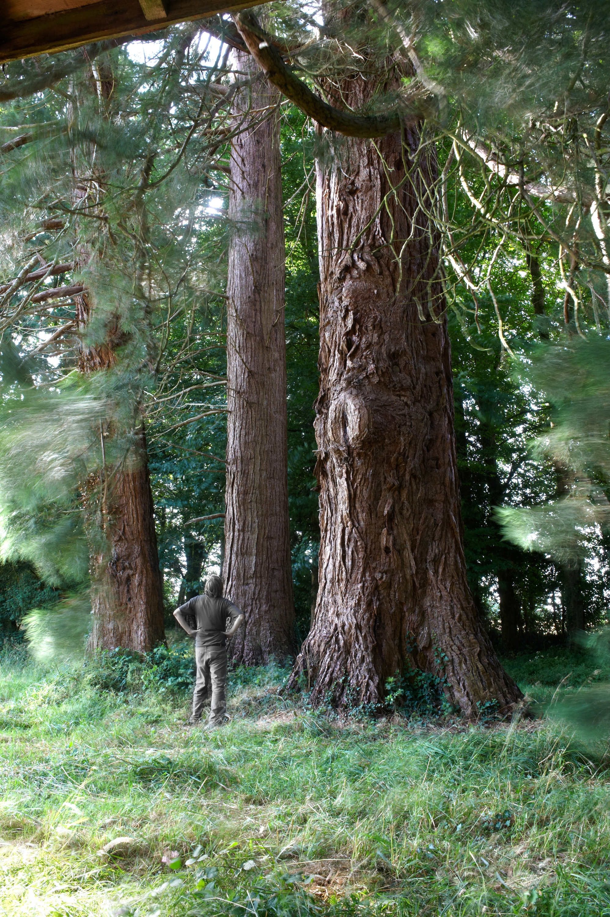 Vue des séquoias géants dans le parc du châteauImmatriculation