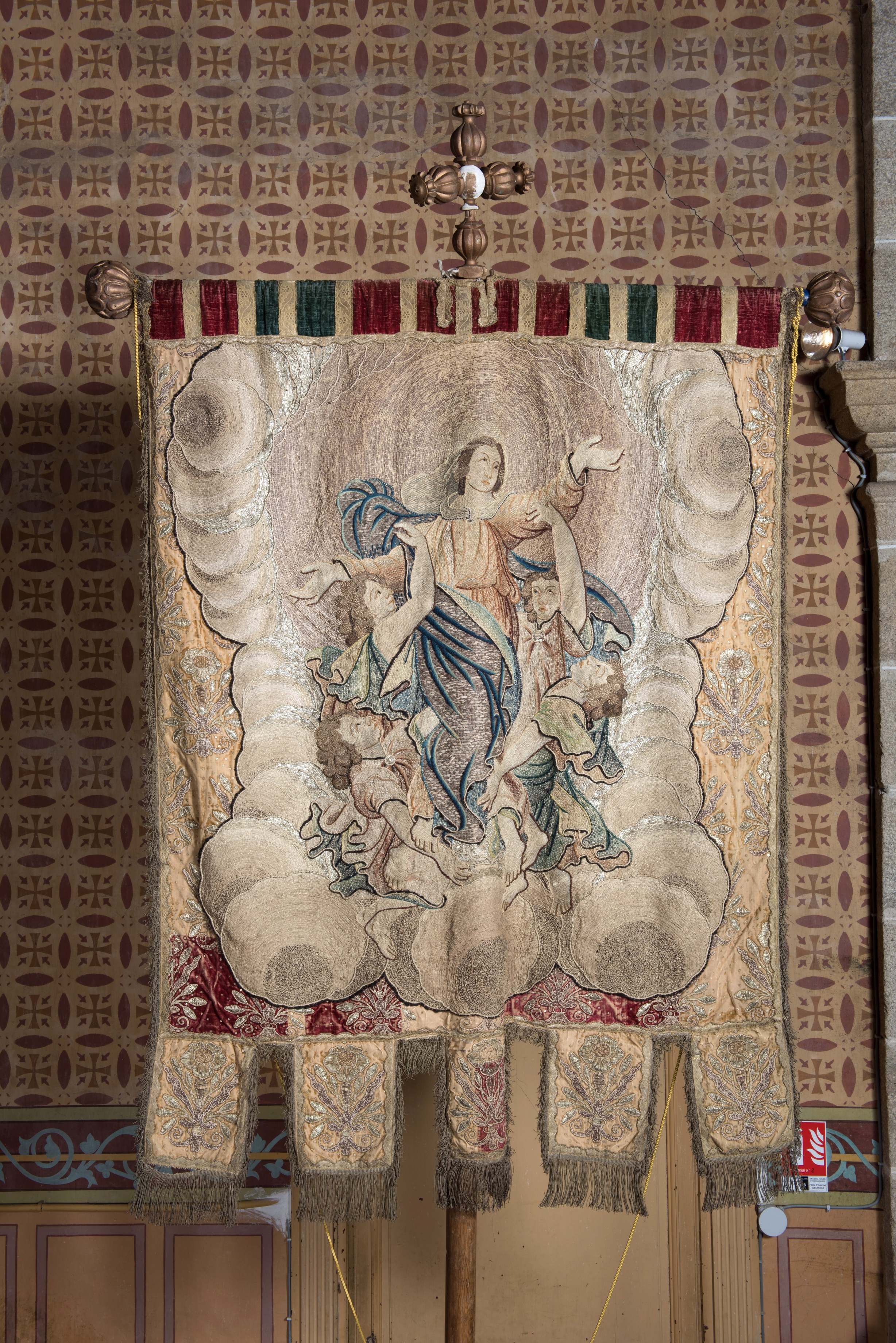 Bannière : Assomption / Crucifixion de l'église Saint-Maudez (Hengoat)