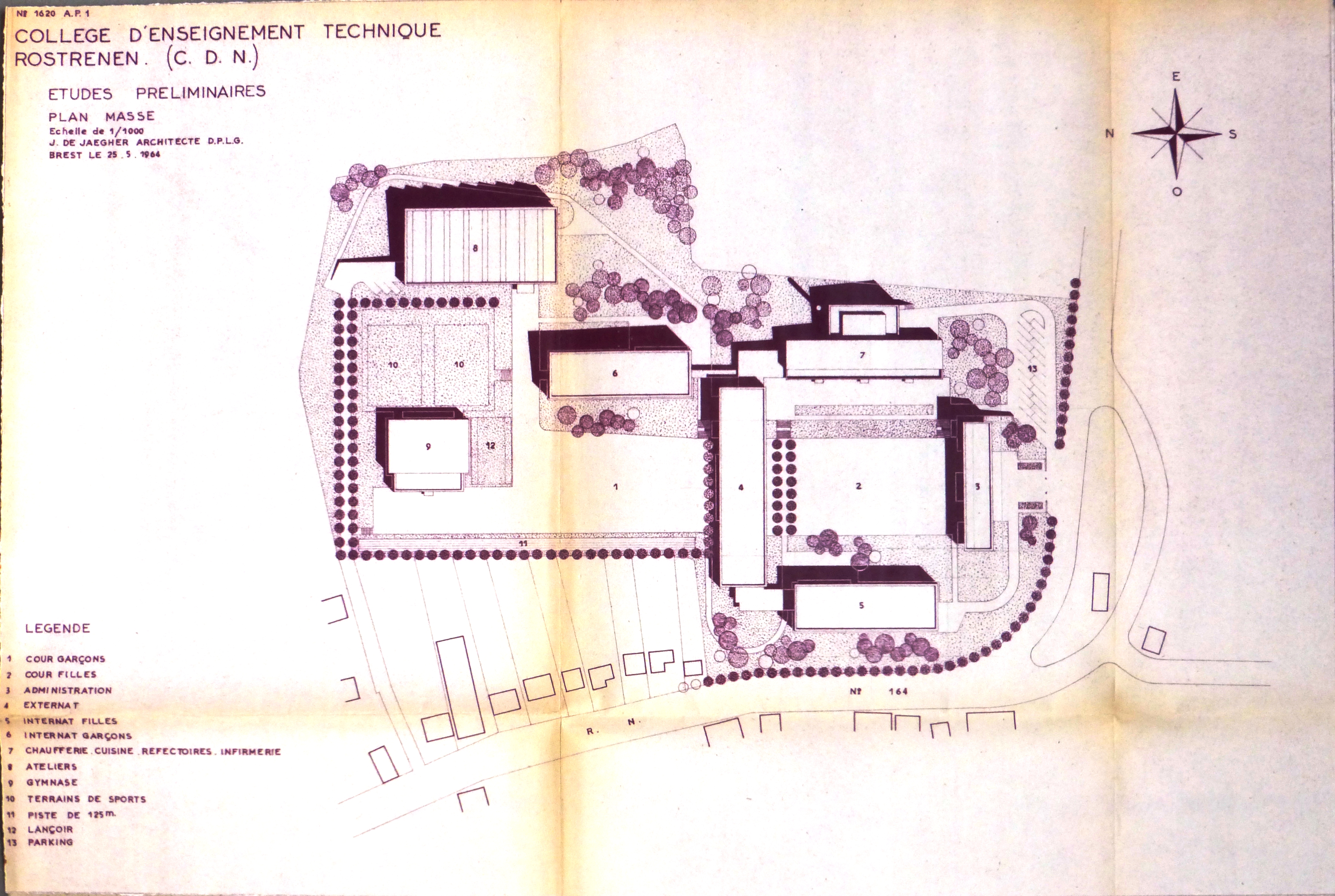 AC Brest : 21 S. Plan masse. J. De Jaegher, 1964.
