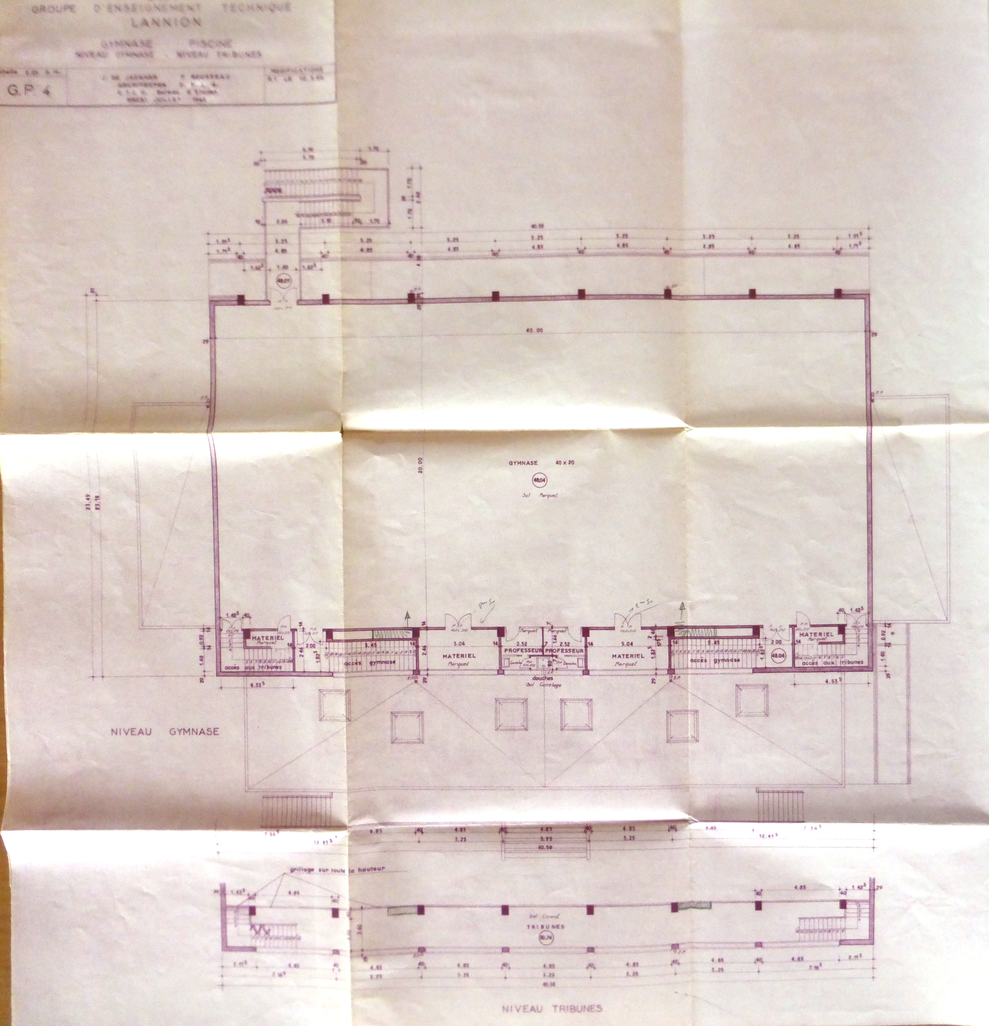 Plan du gymnase et de la piscine (niveau gymnase et niveau tribunes)Immatriculation
