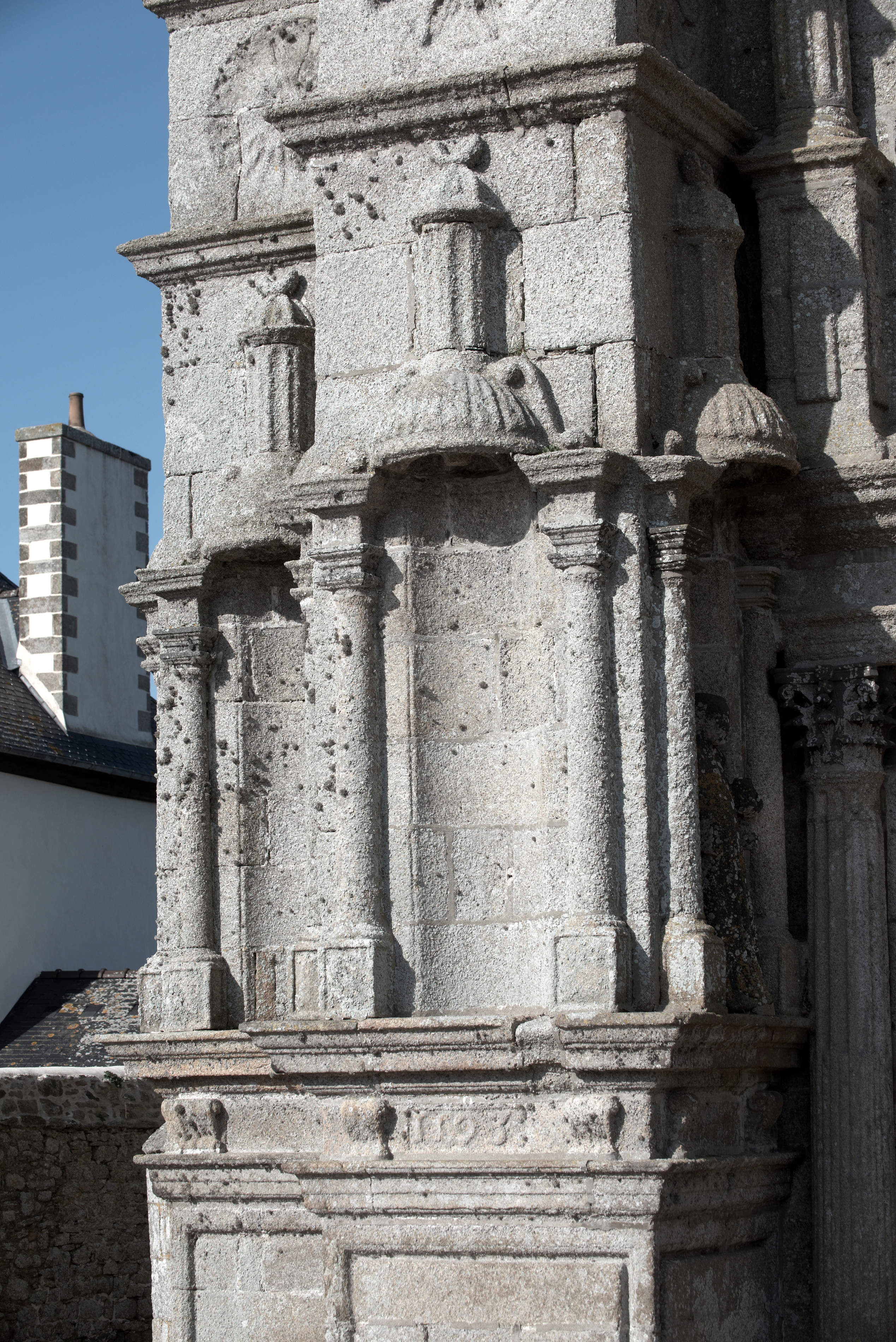 Vue du décor des niches sur le clocher de l'égliseImmatriculation