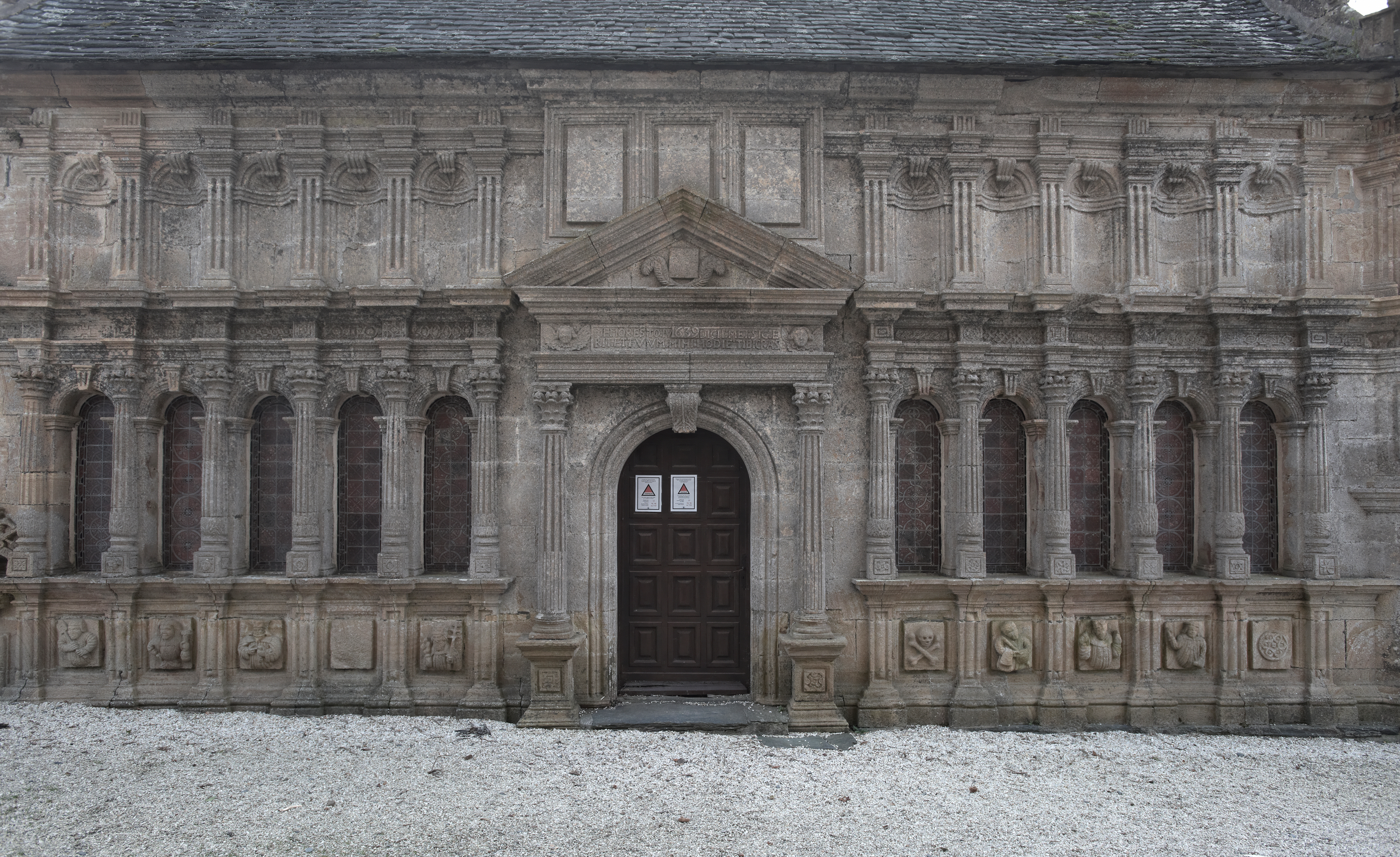 Vue de détail de la façade est de l'ossuaireImmatriculation