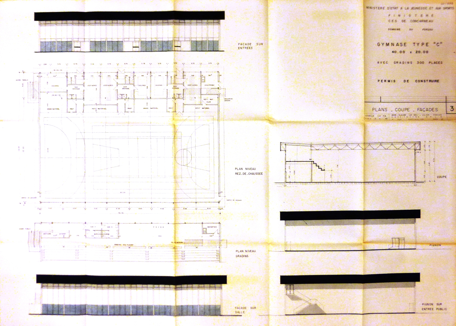 AC Concarneau : non coté. Plan, coupes, façades. J.-C. Le Bail & J. Penven, 1968