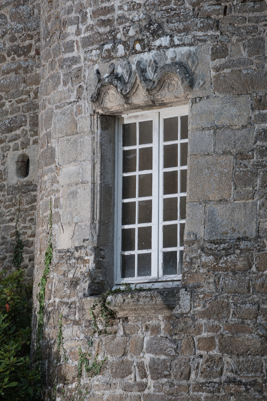 La tour d'amour, travée sur l'entrée, fenêtre du deuxième niveau, accolade entourée de motifs géométriquesImmatriculation