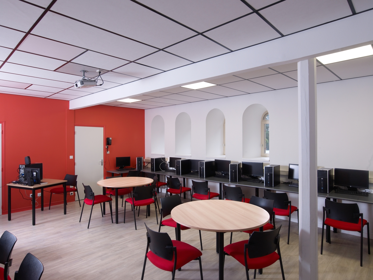 Tréguier : petit séminaire actuellement lycée Joseph Savina, salle informatique située au-dessus du porche ouest de la chapelle du séminaire actuellement Théâtre de l'ArcheImmatriculation