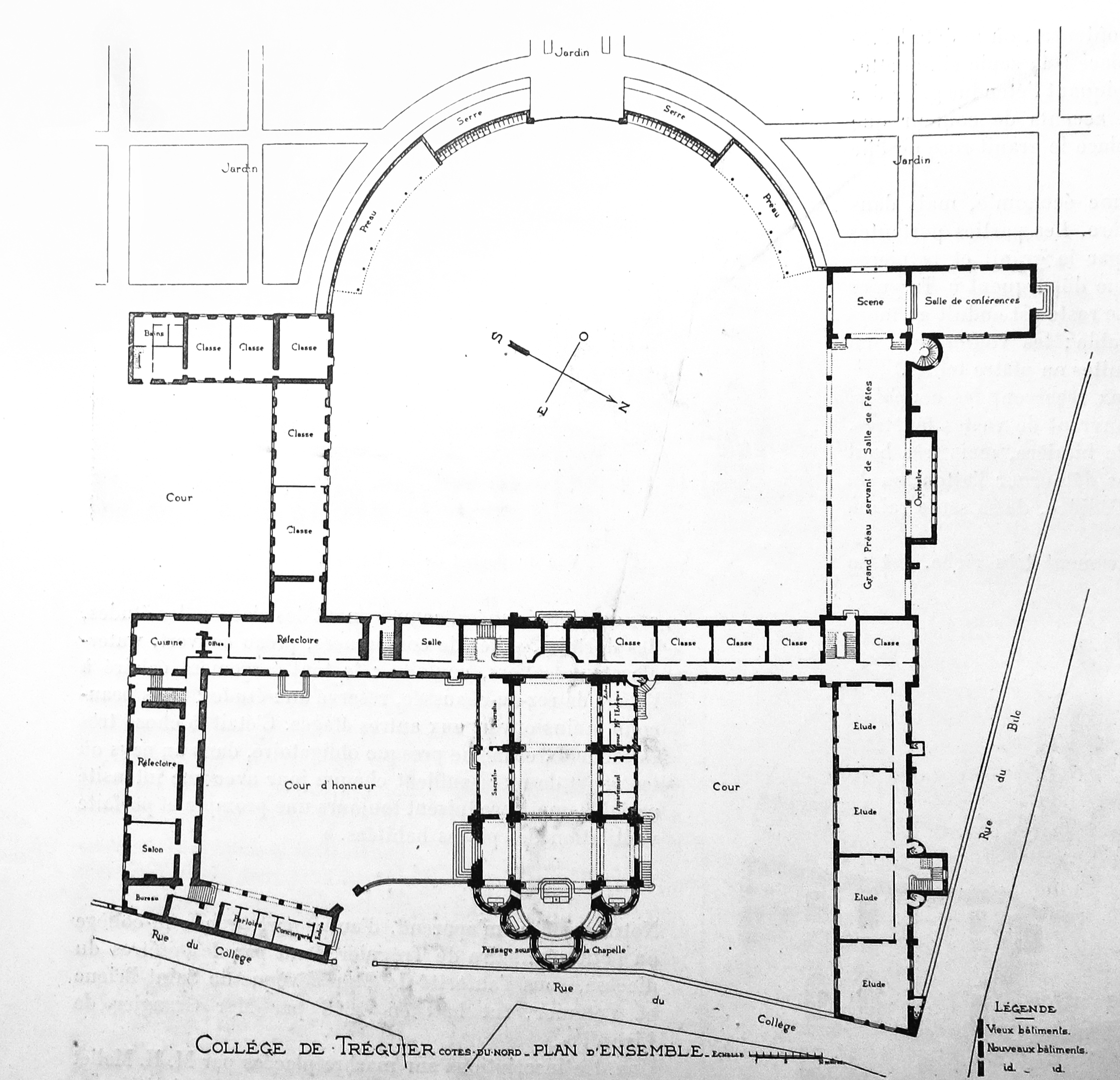 Tréguier : plan d'ensemble du petit séminaire, planche extraite de L'Architecture, Journal hebdomadaire de la Société centrale des architectes français, 29 mars 1902 (Archives municipales de Tréguier, C1)Immatriculation