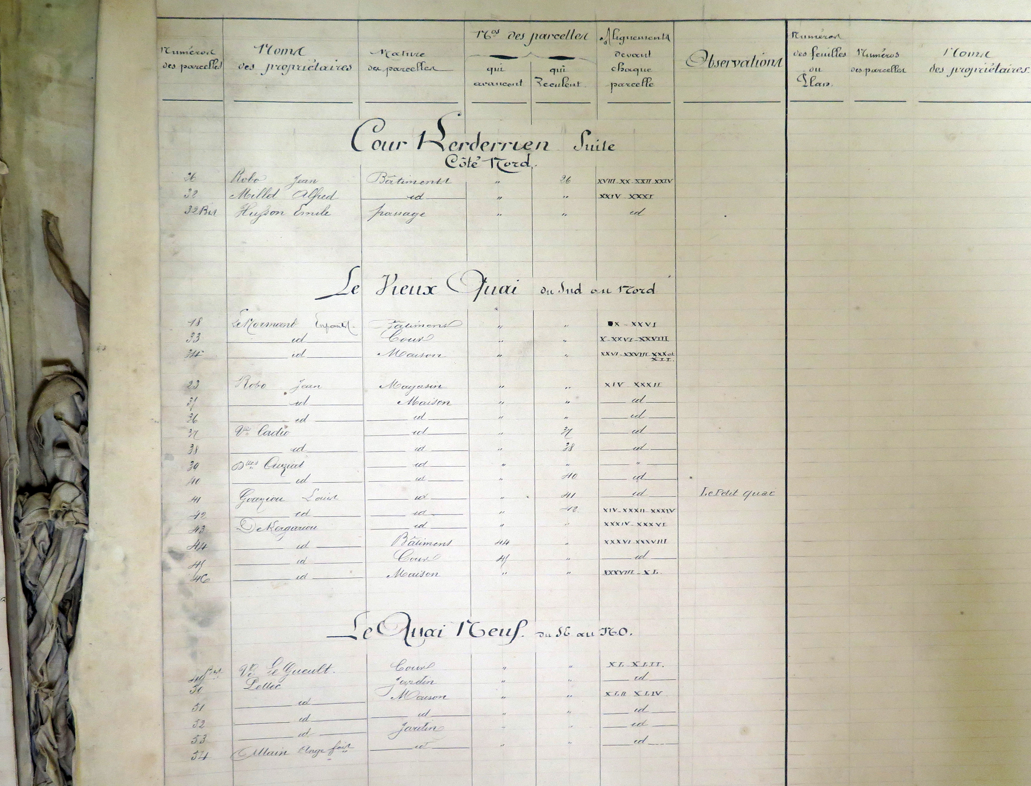 Tréguier : plan d'alignement des rues de la commune, légende de la 6ème feuille, le port de Tréguier, 1906 (Archives municipales de Tréguier, 1O1)Immatriculation