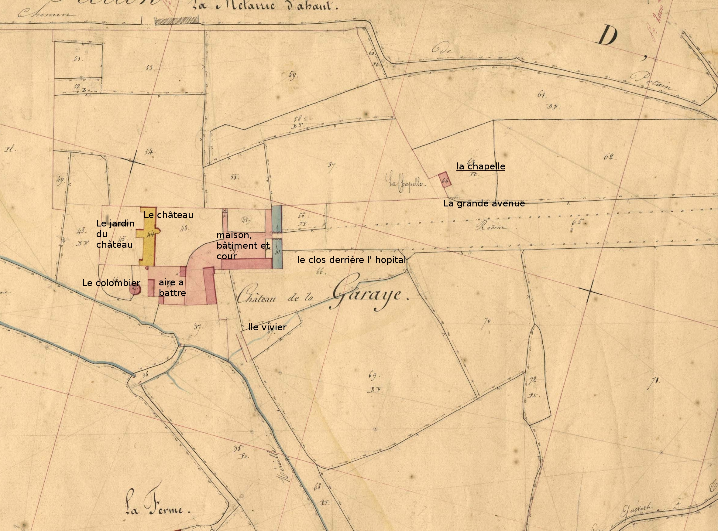 Extrait de section du cadastre de 1844, relevé légendéImmatriculation