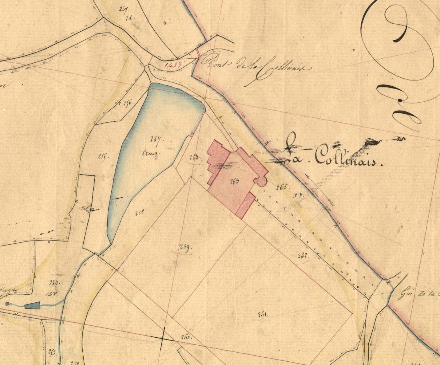 Extrait de la section D, château de la Conninais, mentionné sur le plan de 1844, la CollinaisImmatriculation