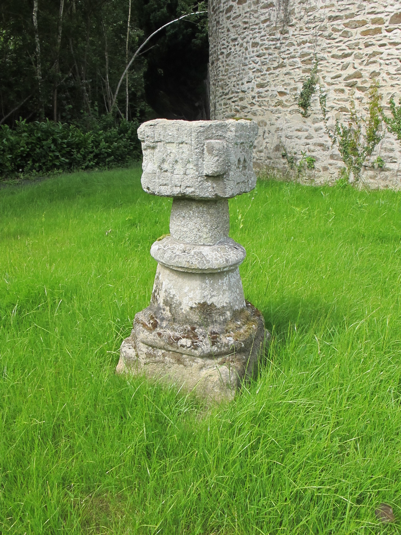 Pilier de pierre déposé et remonté avec un ancien bénitier, grand jardin ouestImmatriculation