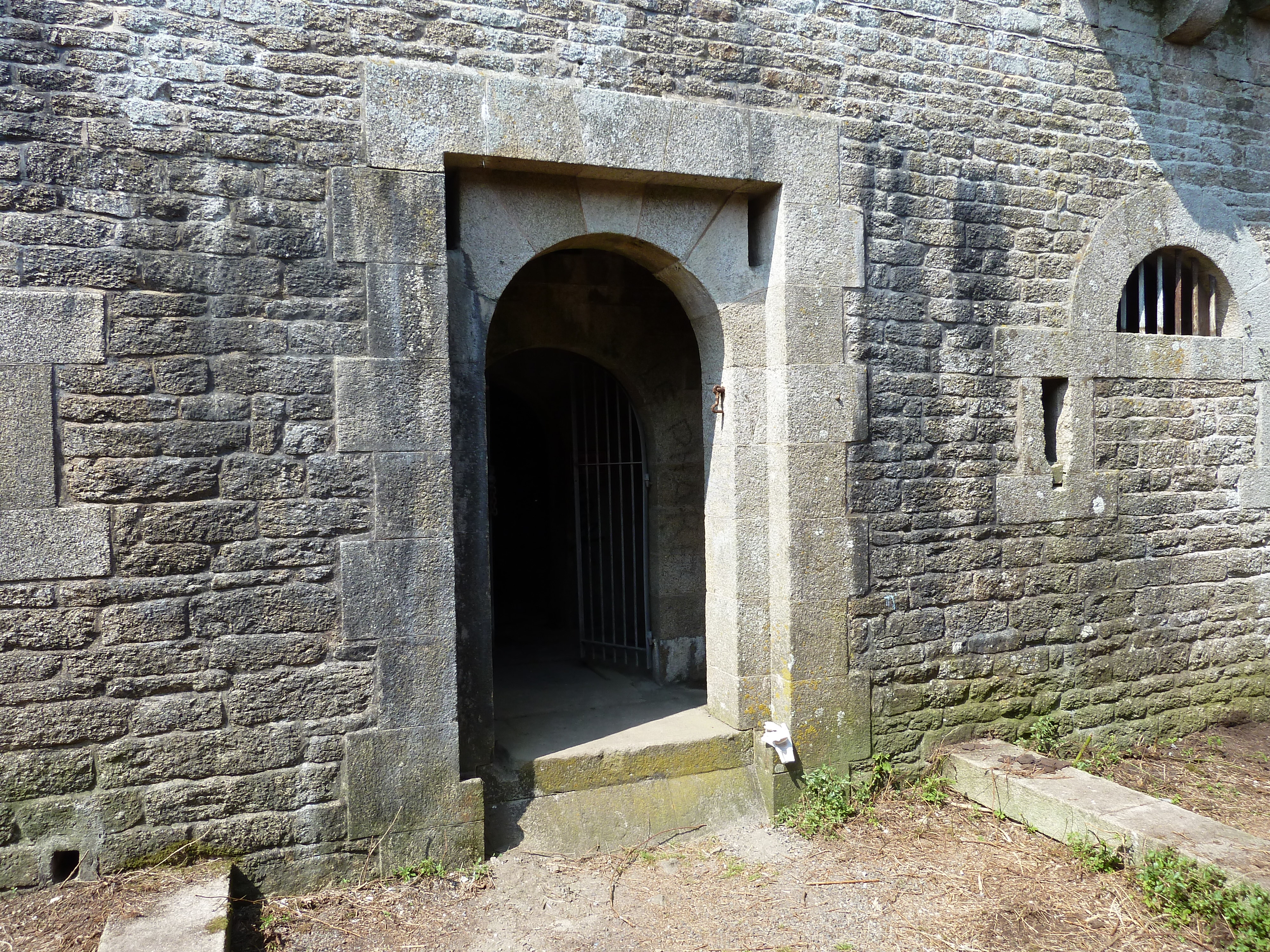 Archipel de Glénan, batterie de Penfret, corps de garde crénelé, porte.Immatriculation
