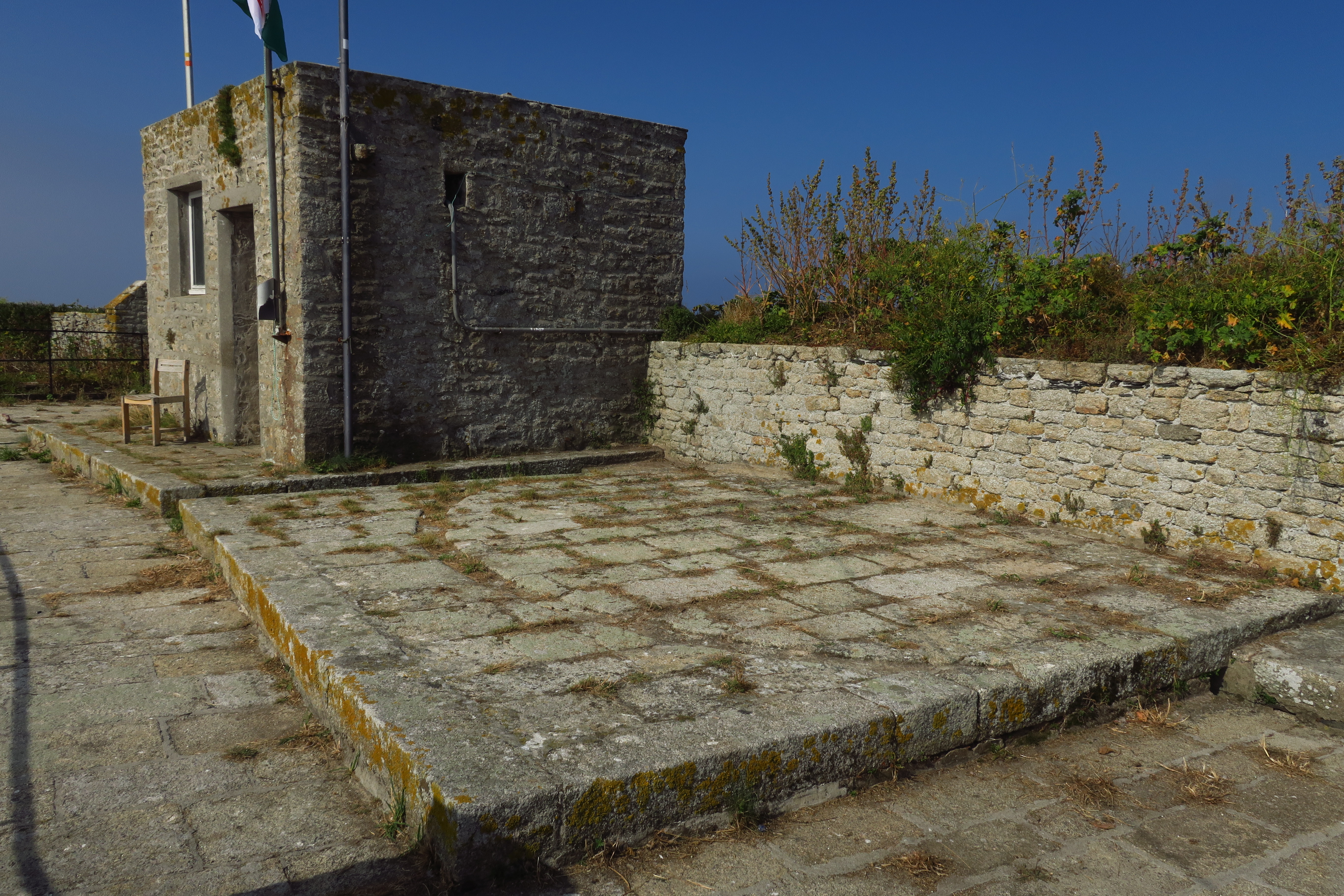 Archipel de Glénan, fort de l'île Cigogne, batterie Ouest, les deux plate-formes pour canons.Immatriculation