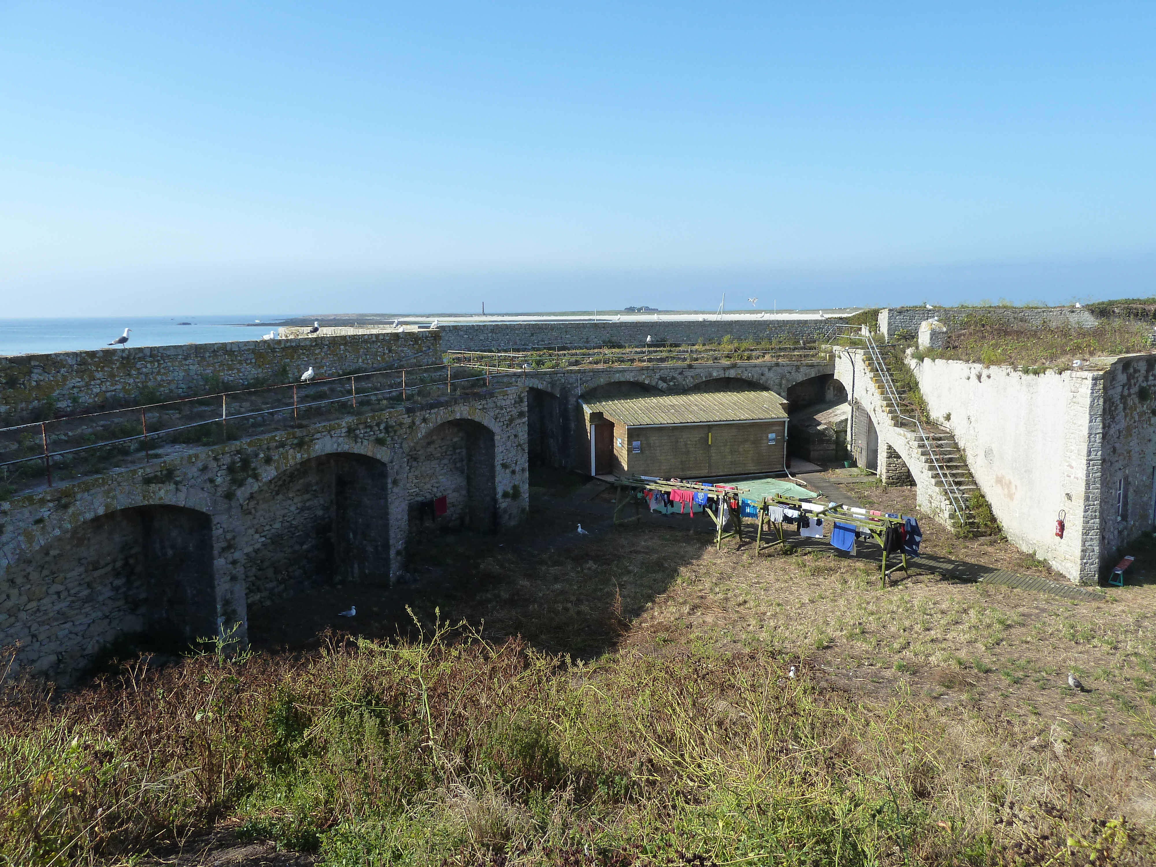 Archipel de Glénan, fort de l'île Cigogne, chemin de ronde sur arcs sud-est.Immatriculation