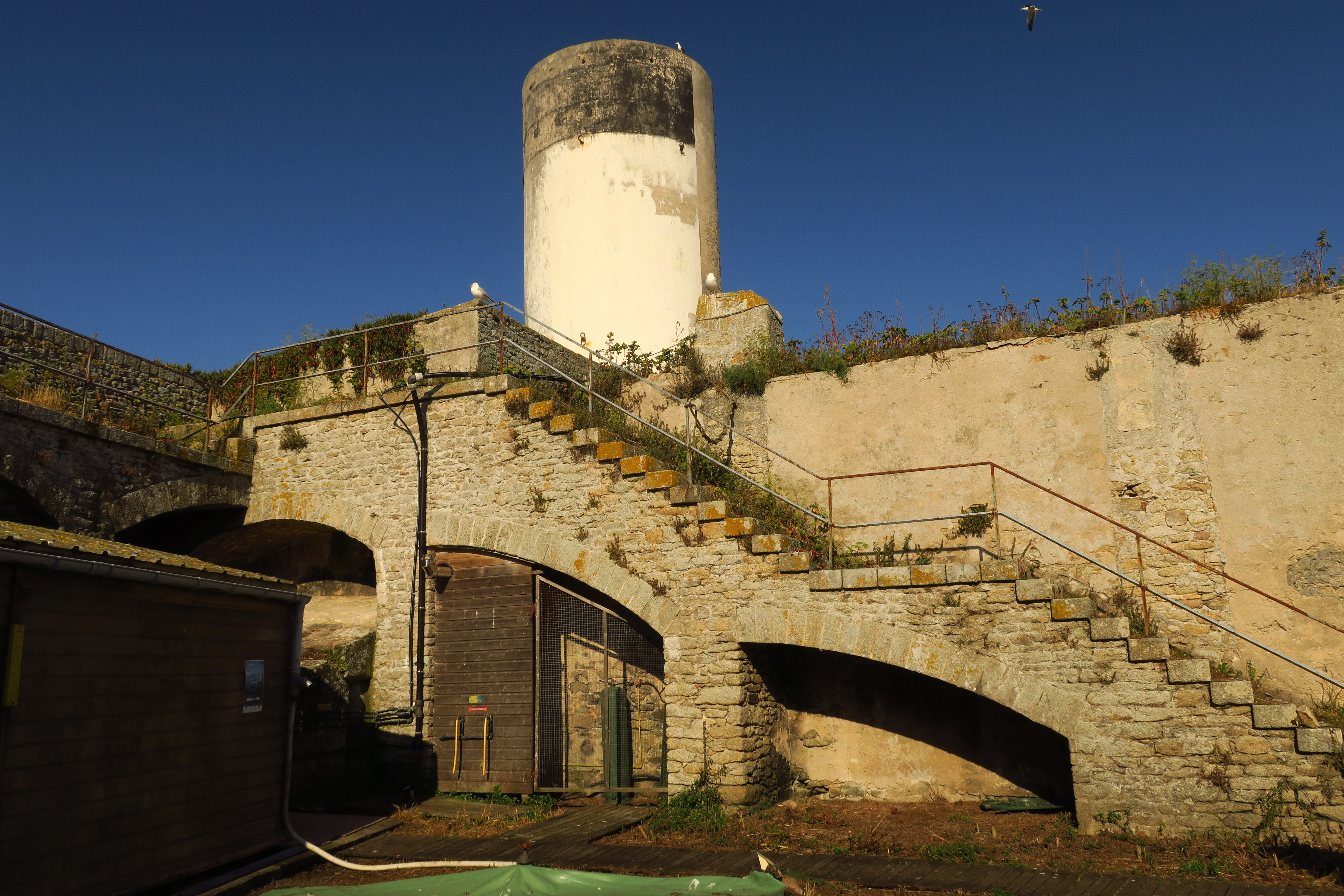 Archipel de Glénan, fort de l'île Cigogne, escalier d'accès au rempart sud.Immatriculation