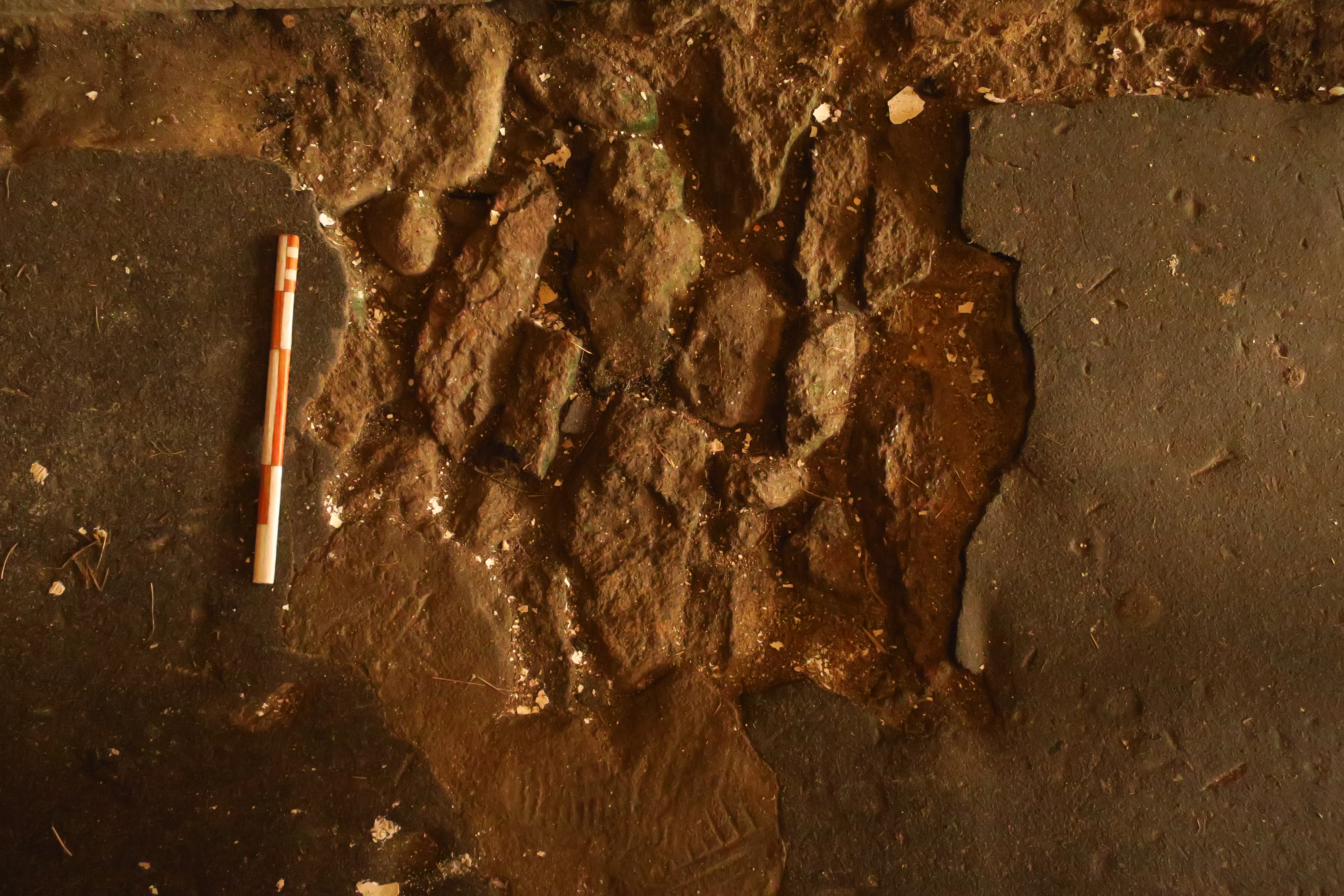 Archipel de Glénan, fort de l'île Cigogne, enduit bitumineux sur le sol d'une casemate.Immatriculation