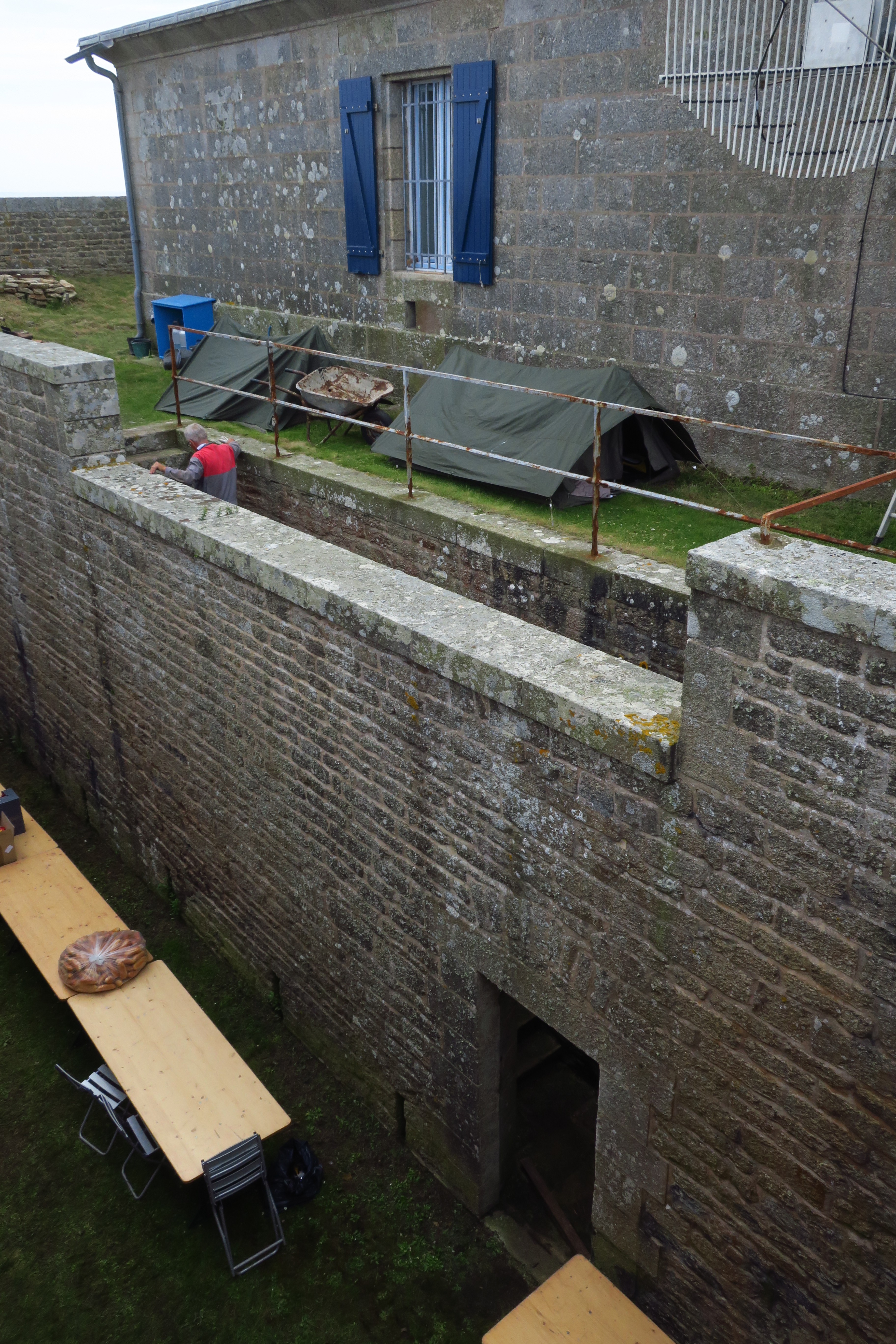 Archipel de Glénan, batterie de Penfret, réduit, escalier de communication entre le terre-plein du phare et le fossé.Immatriculation