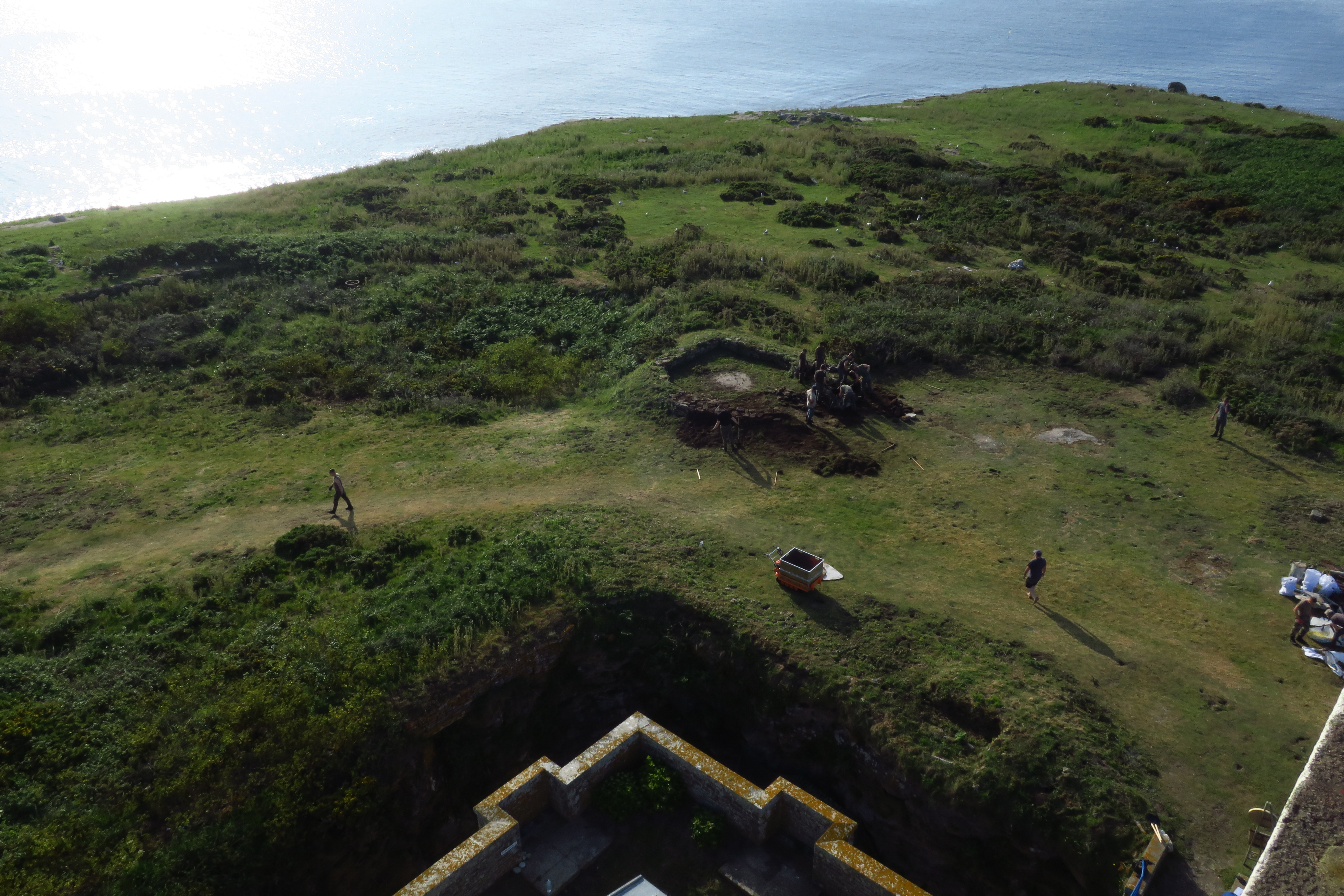 Archipel de Glénan, batterie de Penfret, cuve pour pièce légère sur le glacis sud-est du réduit en cours de dégagement (2017).Immatriculation