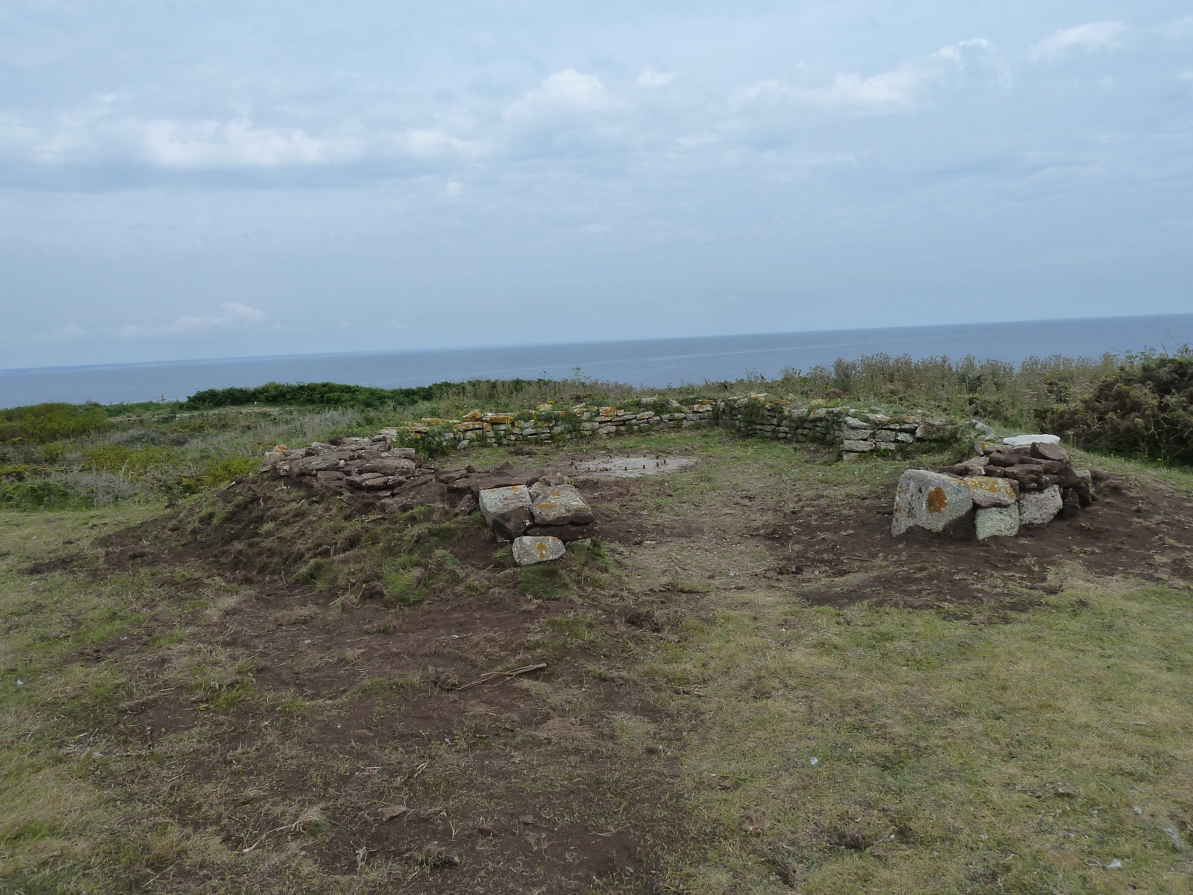 Archipel de Glénan, batterie de Penfret, cuve pour pièce légère sur le glacis sud-est du réduit après dégagement.Immatriculation