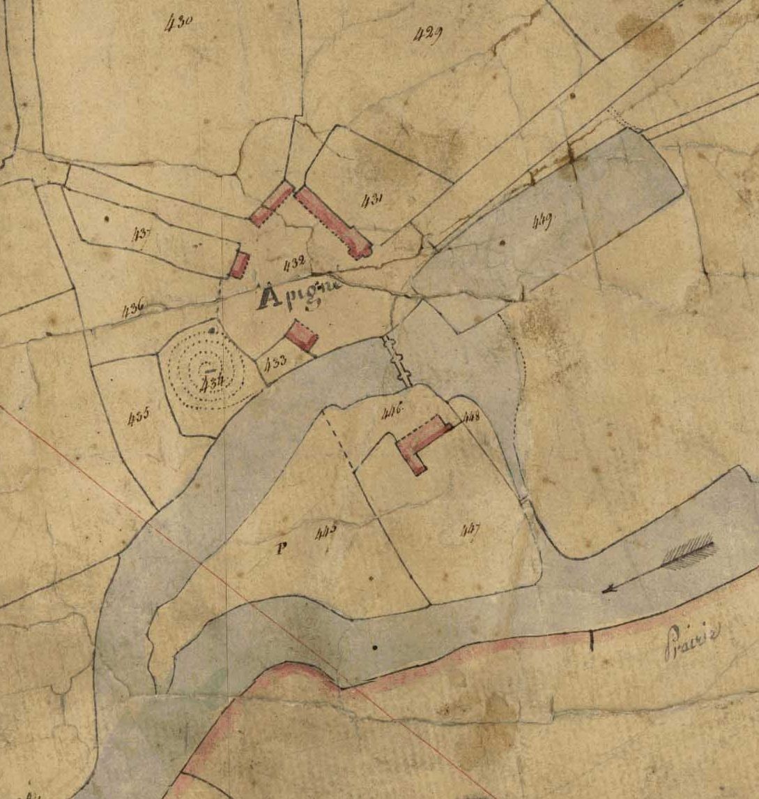 L'ancien château d'Apigné, en bordure de Vilaine sur le cadastre de 1829Immatriculation