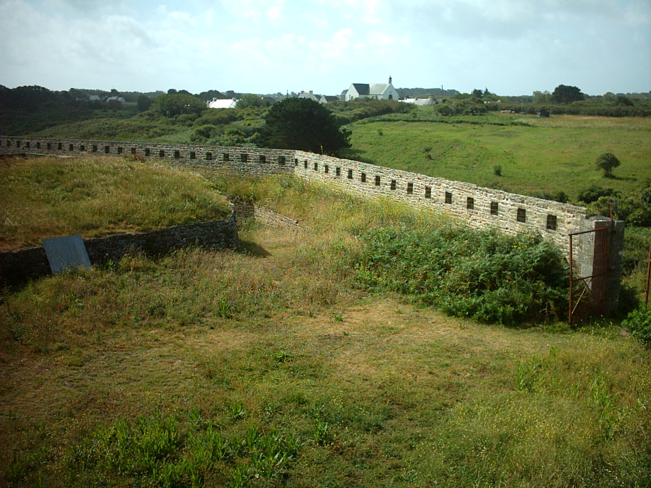 Groix, batterie du Bas-Grognon, le mur crénelé en 2007.Immatriculation