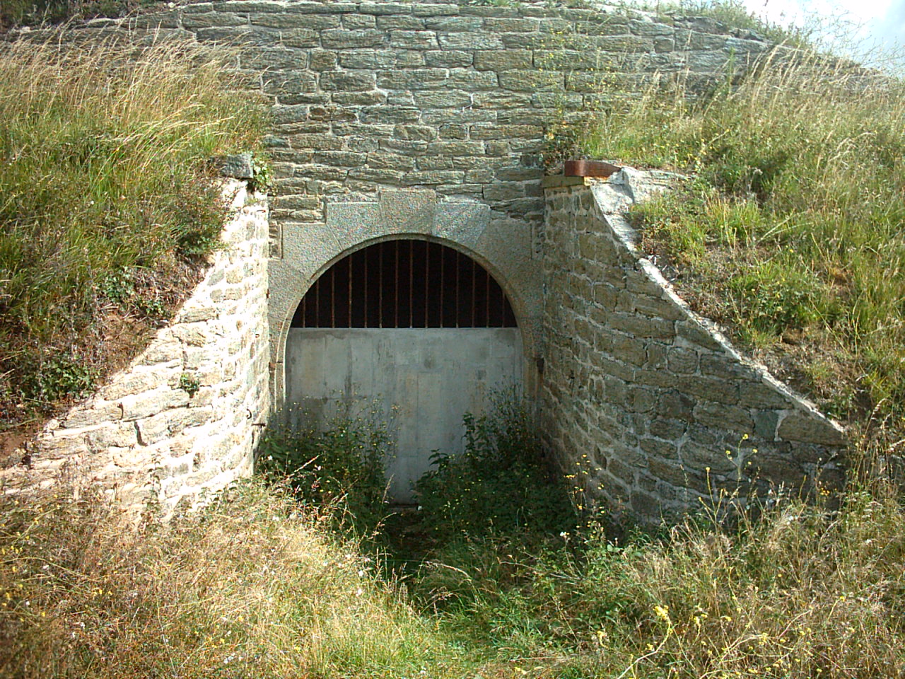 Groix, batterie du Bas-Grognon, débouché du monte-charge du magasin à poudre souterrain en 2007.Immatriculation