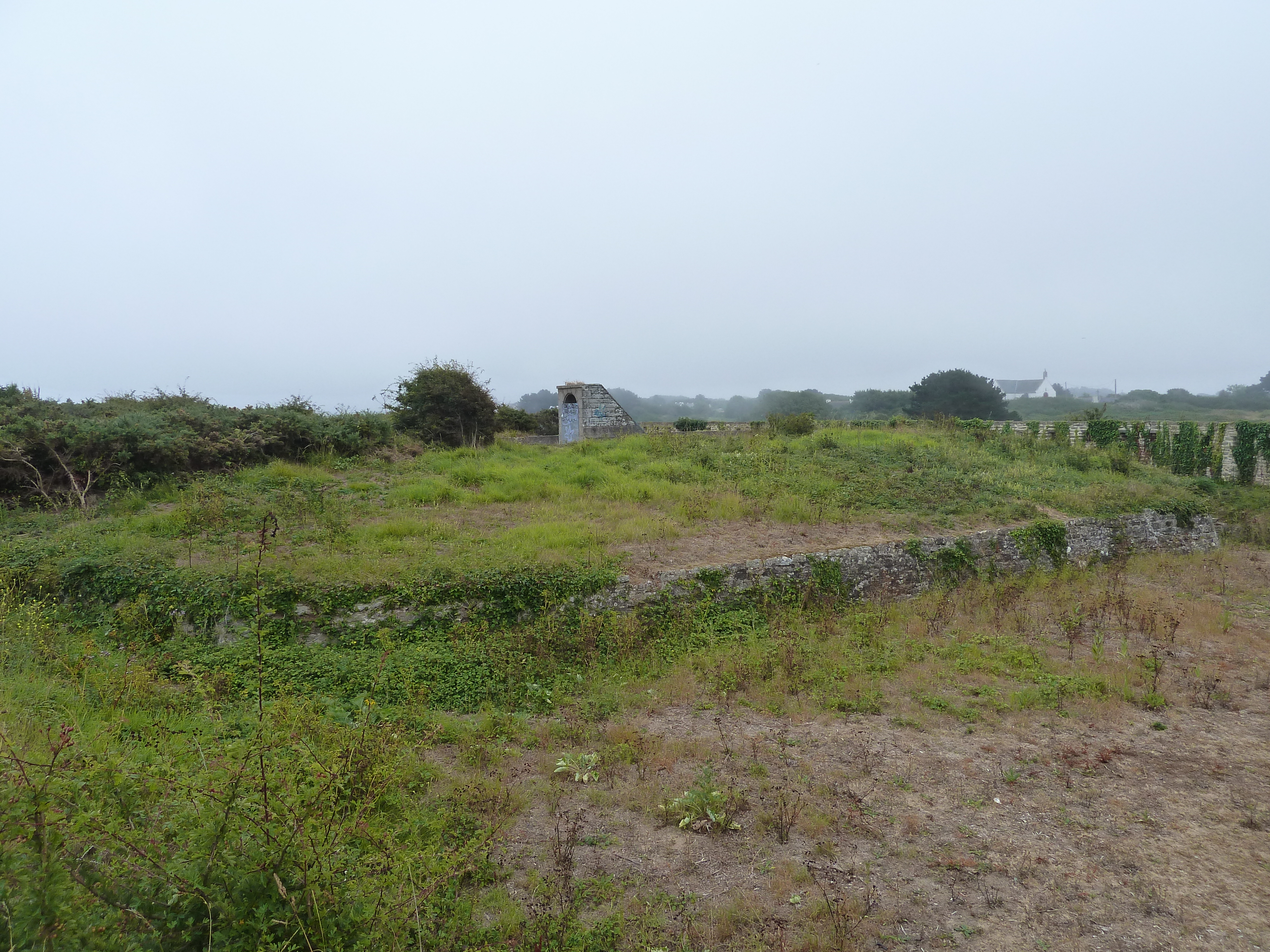 Groix, batterie du Bas-Grognon, massif terrassé recouvrant le corps de garde crénelé.Immatriculation