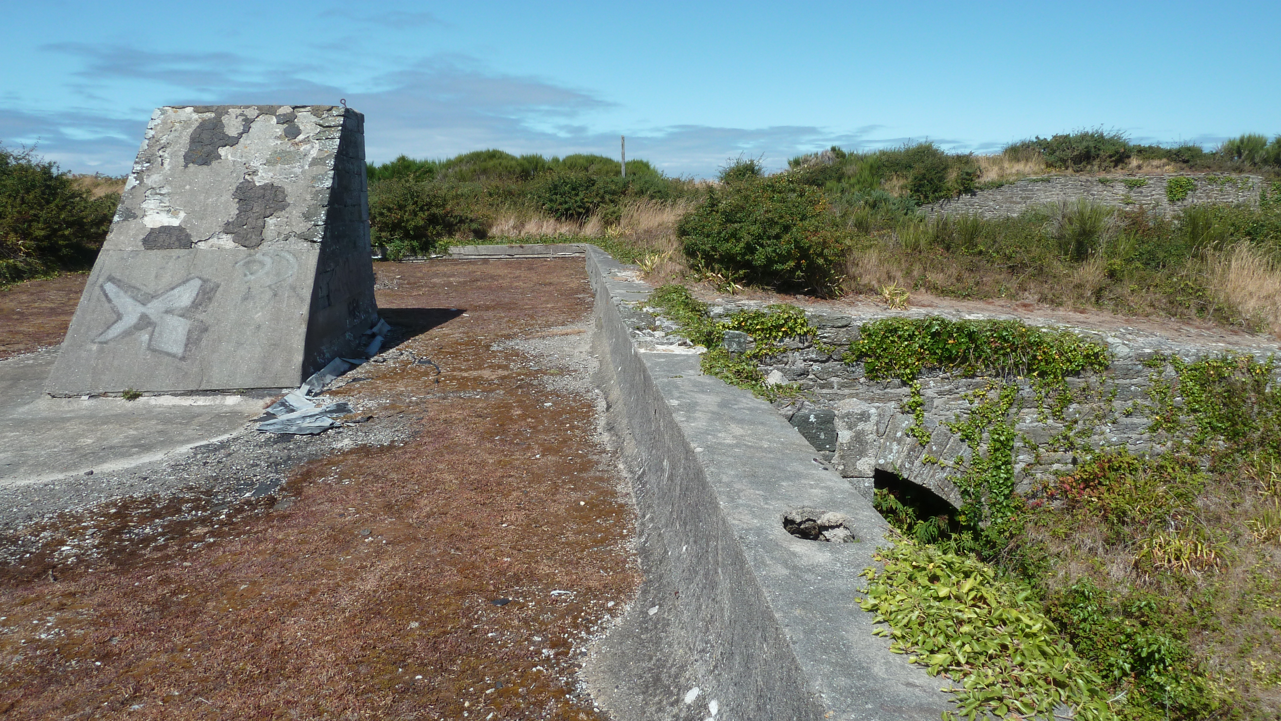 Groix, batterie du Bas-Grognon, corps de garde crénelé, terrasse.Immatriculation