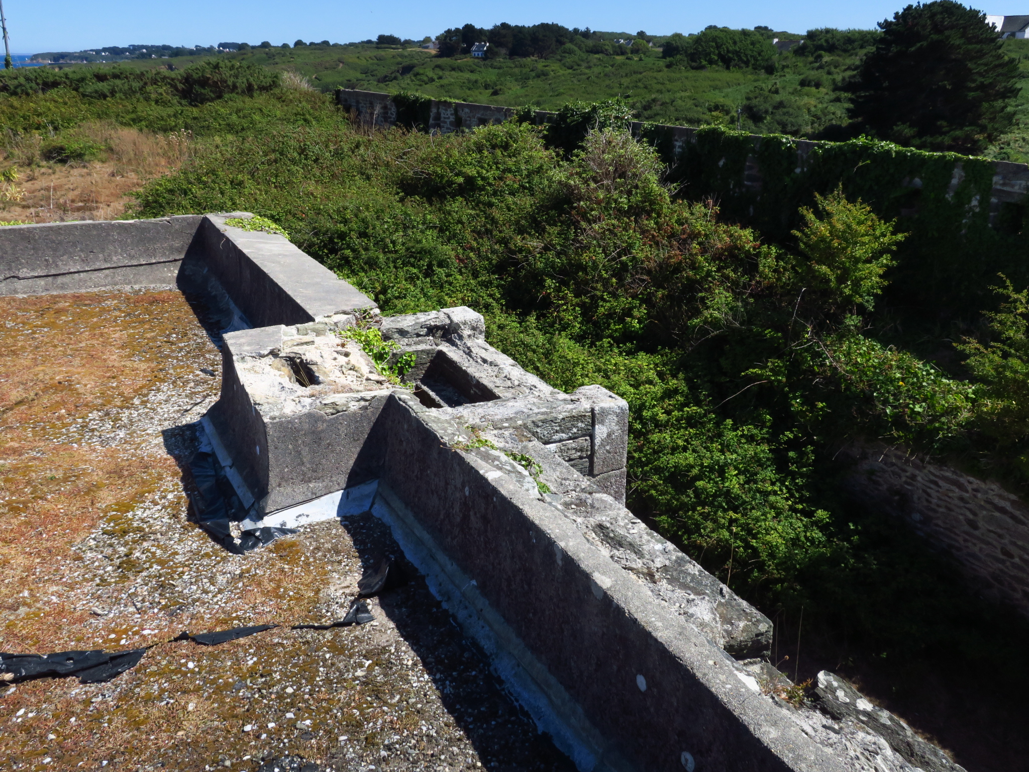 Groix, batterie du Bas-Grognon, corps de garde crénelé, terrasse.Immatriculation
