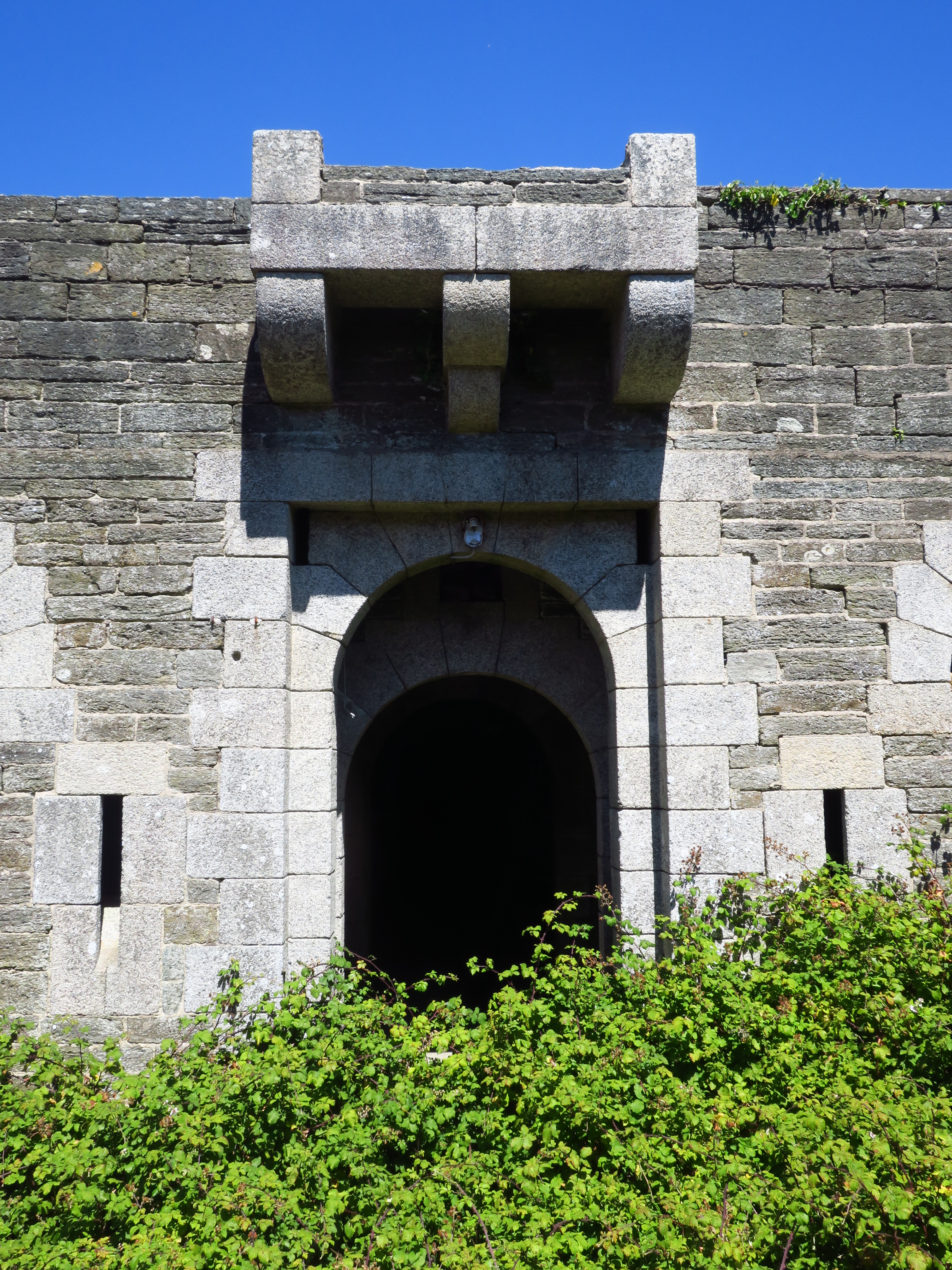 Groix, batterie du Bas-Grognon, corps de garde crénelé, porte.Immatriculation