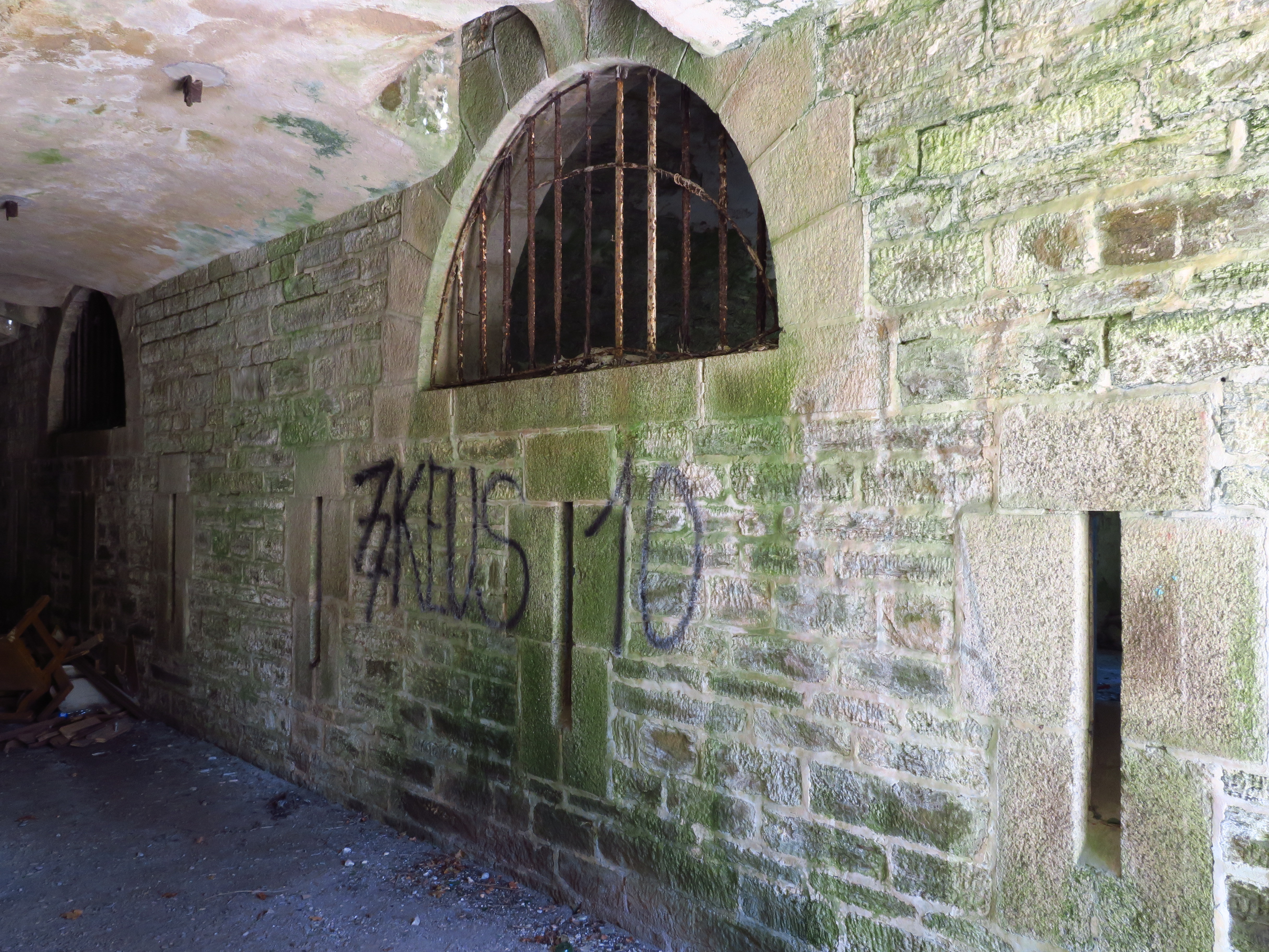 Groix, batterie du Bas-Grognon, corps de garde crénelé, façade latérale.Immatriculation