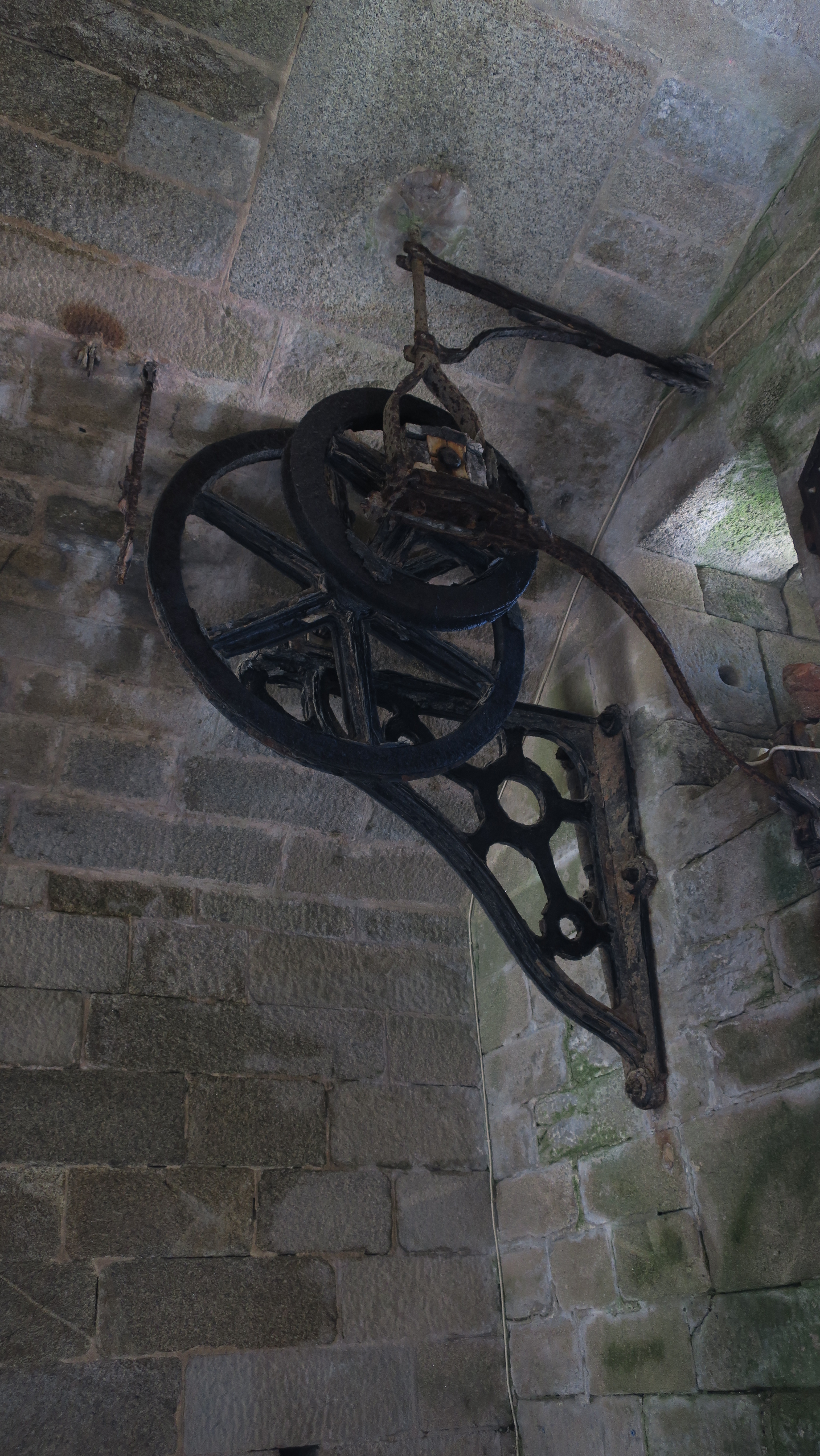 Hoedic, fort central, caserne à l'épreuve, détail d'une partie du mécanisme du pont-levis.Immatriculation