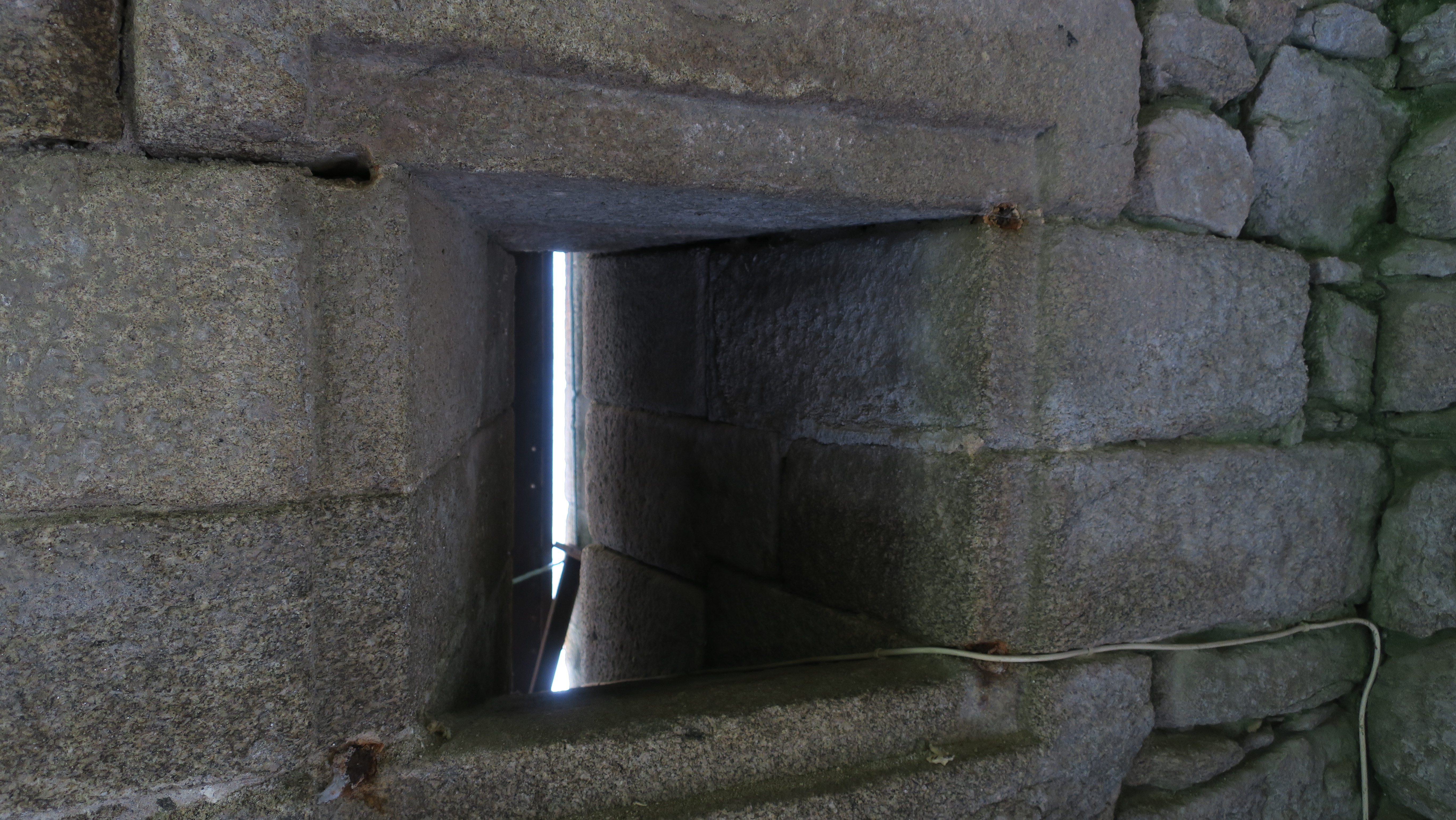 Hoedic, fort central, caserne à l'épreuve, créneau de tir flanquant l'entrée depuis le corps de garde.Immatriculation