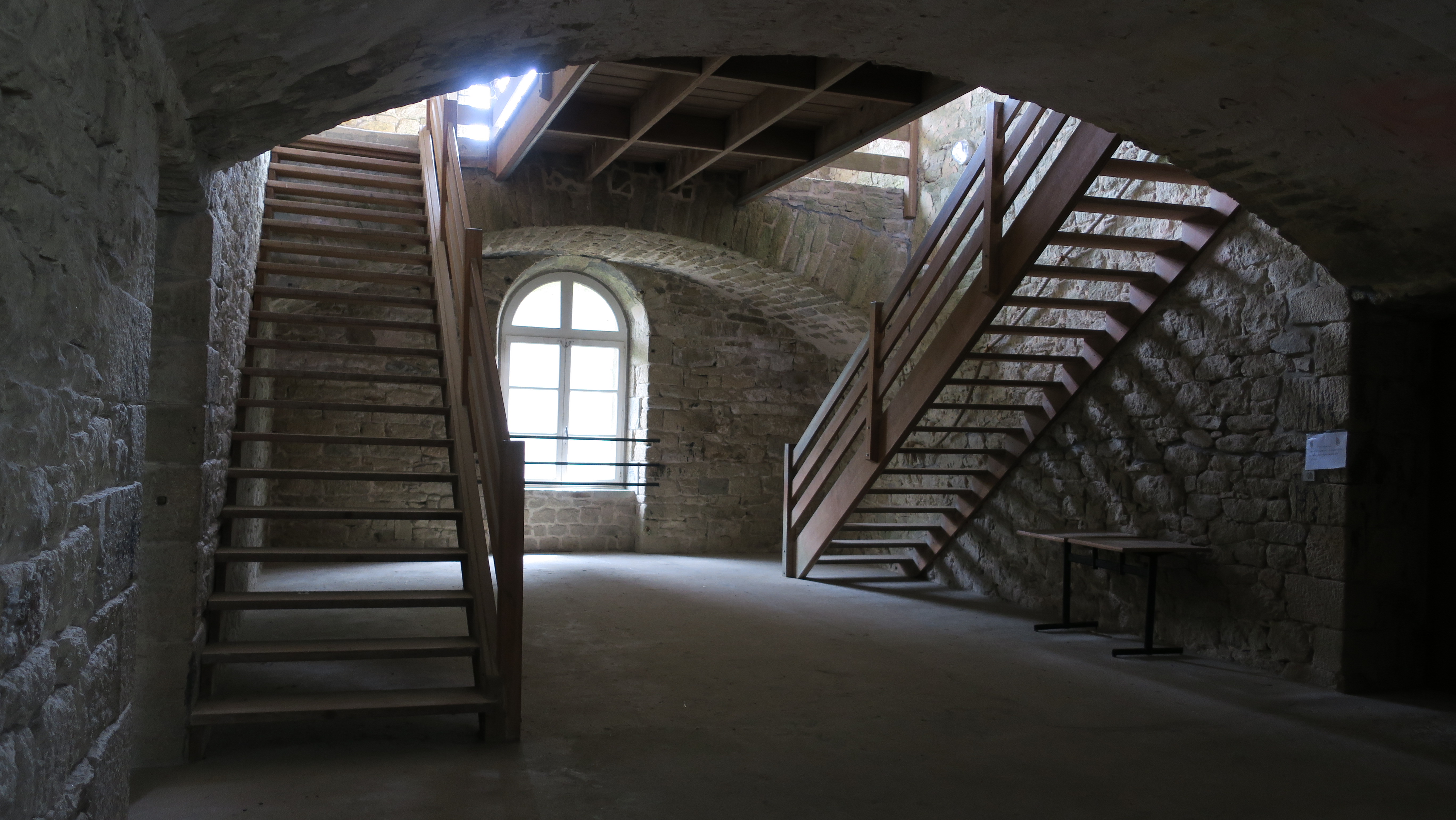 Hoedic, fort central, caserne à l'épreuve, cage d'escalier centrale.Immatriculation