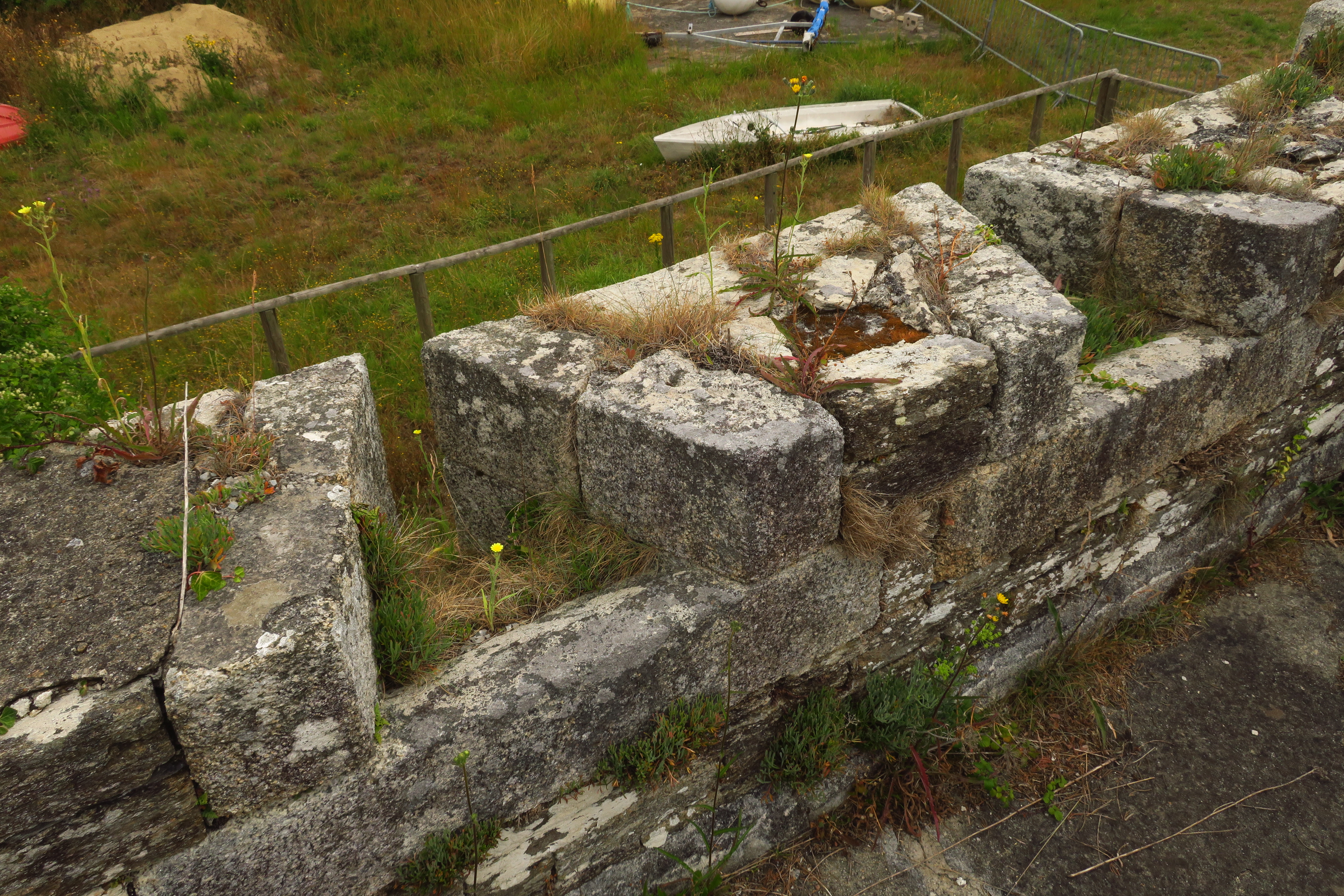 Groix, batterie du Gripp, corps de garde crénelé, détail du parapet de la terrasse.Immatriculation