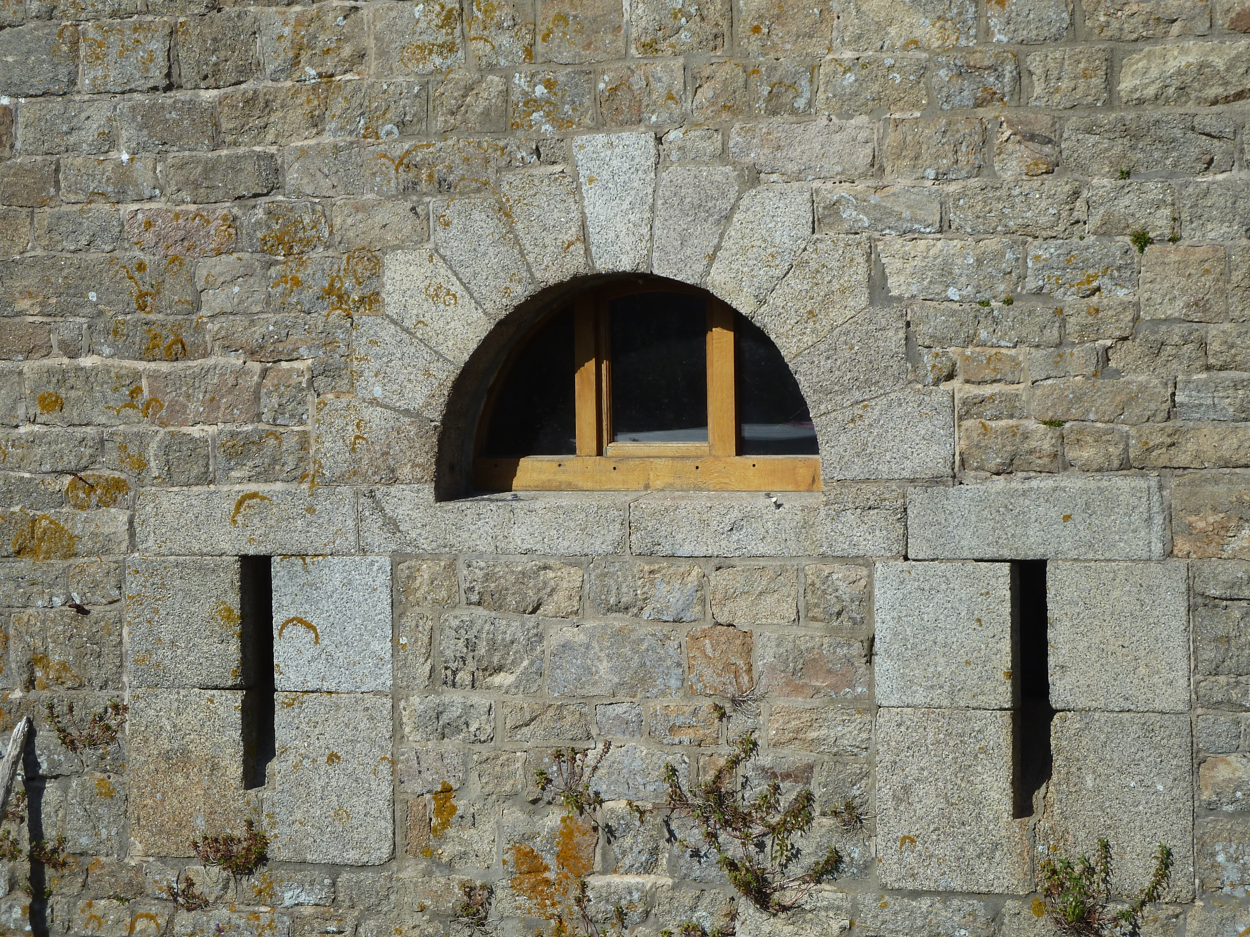 Île-d'Houat, batterie d'En Tal, corps de garde crénelé, détail d'une baie et de créneaux de tir.Immatriculation
