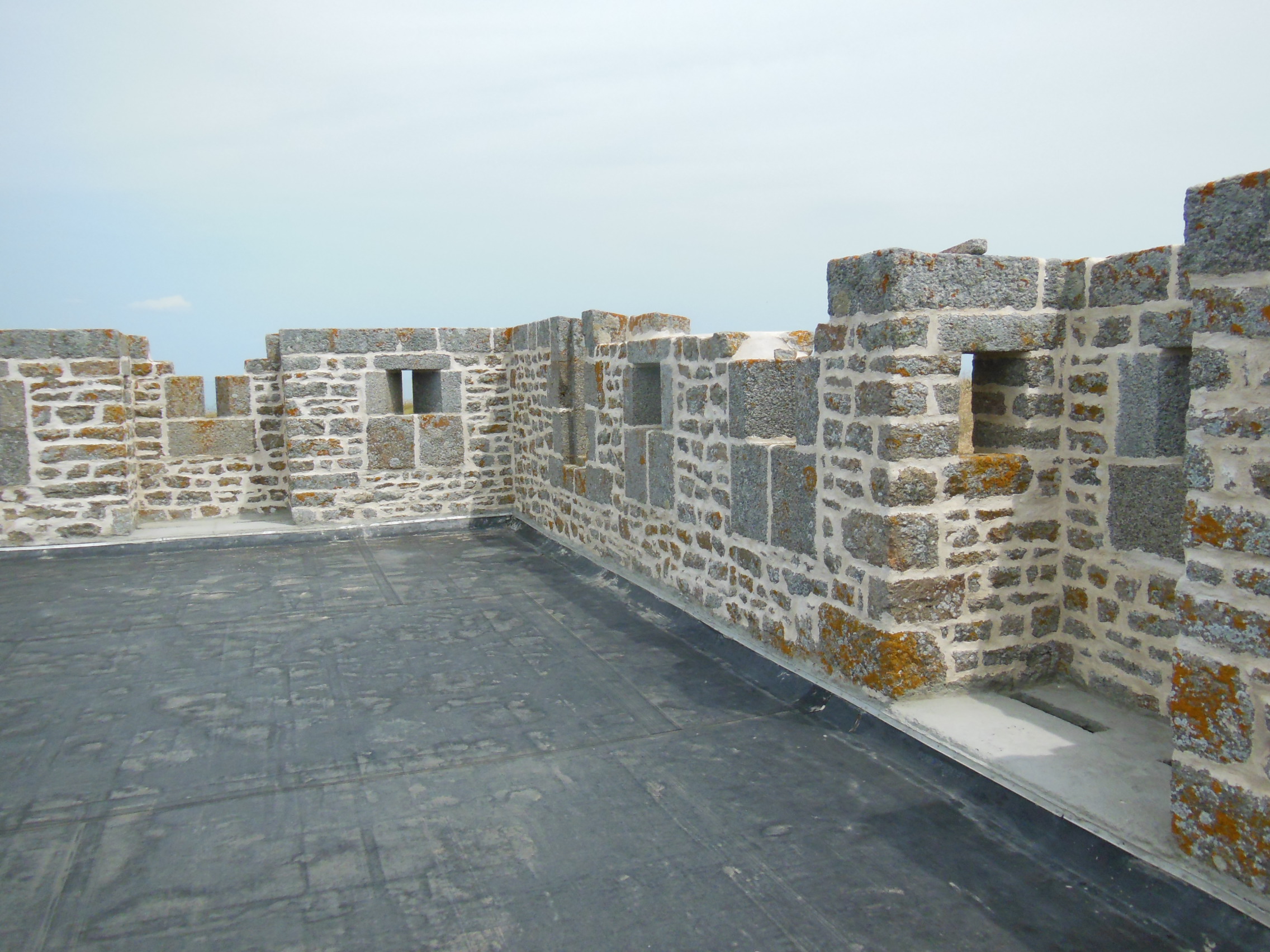 Île-d'Houat, batterie d'En Tal, corps de garde crénelé, détail du parapet de la terrasse.Immatriculation
