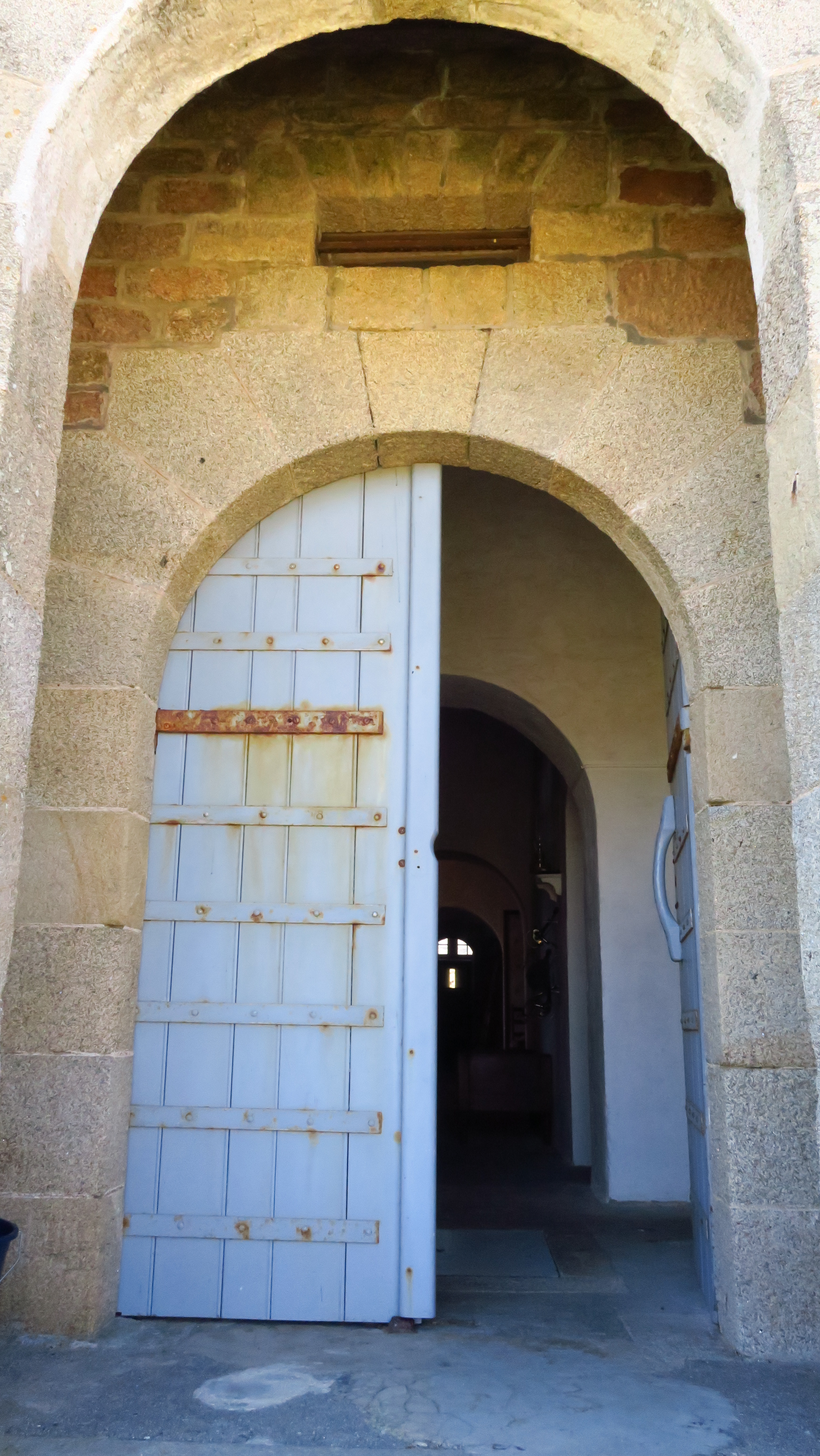 Île-d'Houat, batterie du Béniguet, corps de garde crénelé, porte.Immatriculation