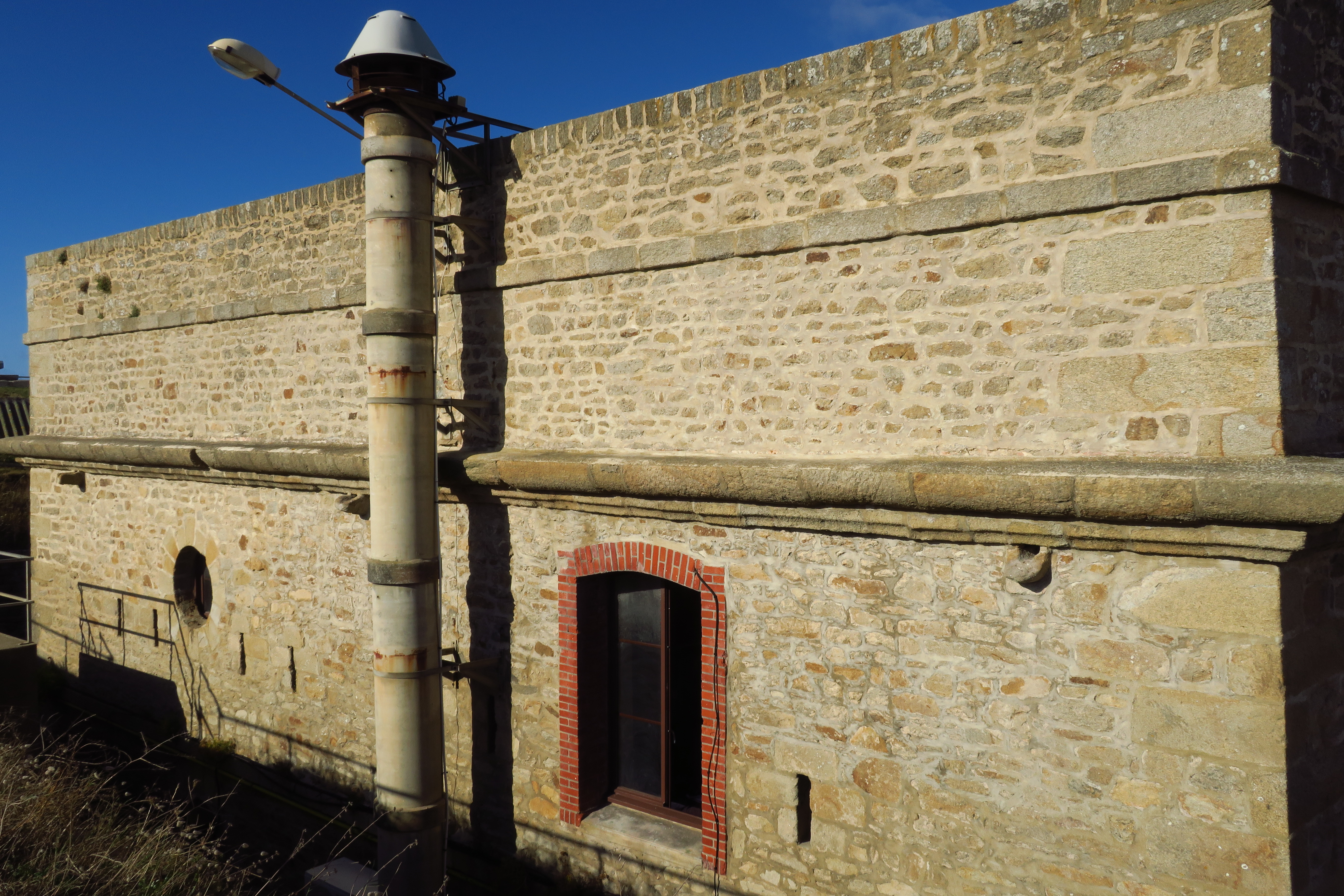 Saint-Pierre-Quiberon, fort de Penthièvre, caserne défensive, face du demi-bastion sud-ouest.Immatriculation