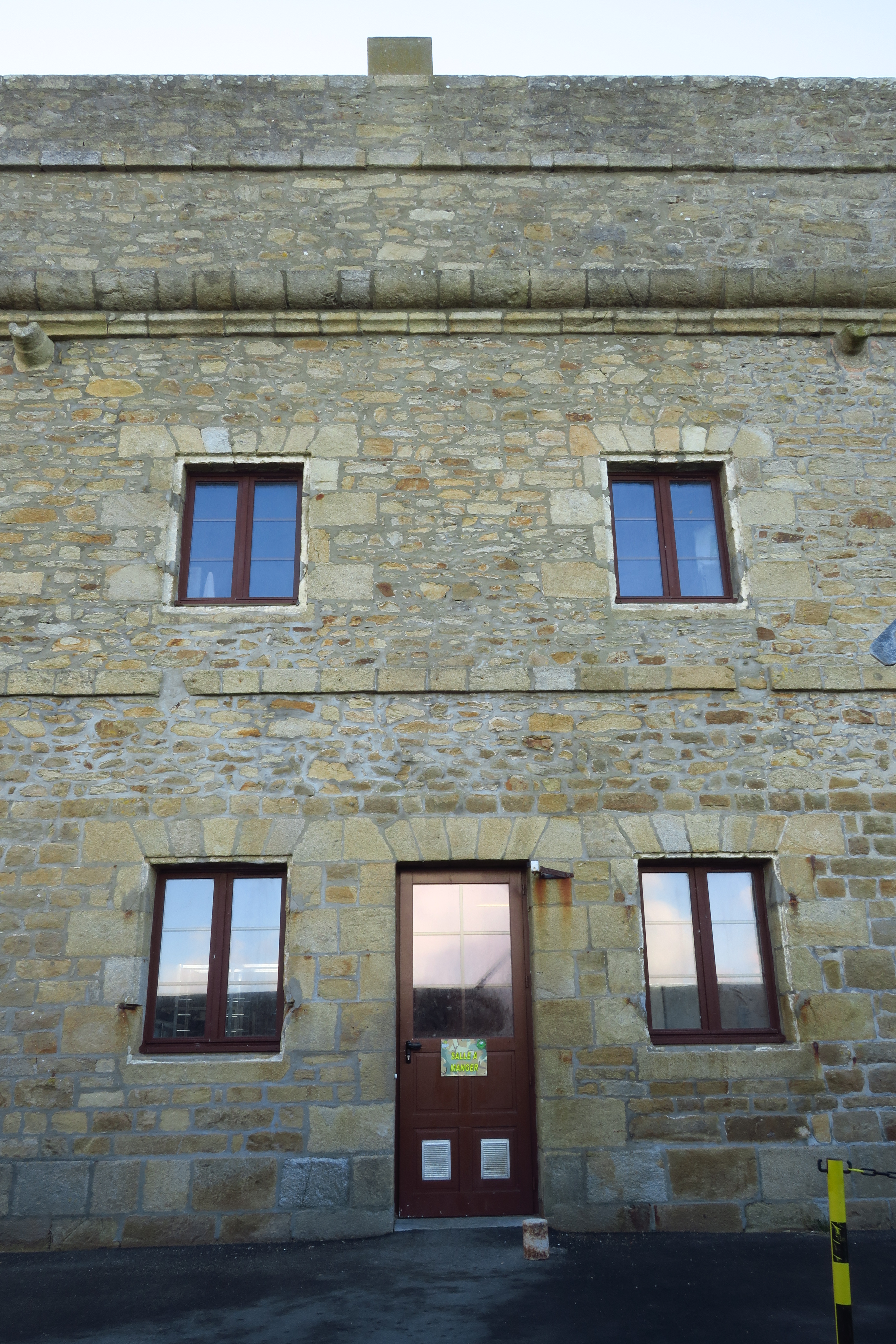 Saint-Pierre-Quiberon, fort de Penthièvre, caserne défensive, détail de la façade nord-ouest.Immatriculation