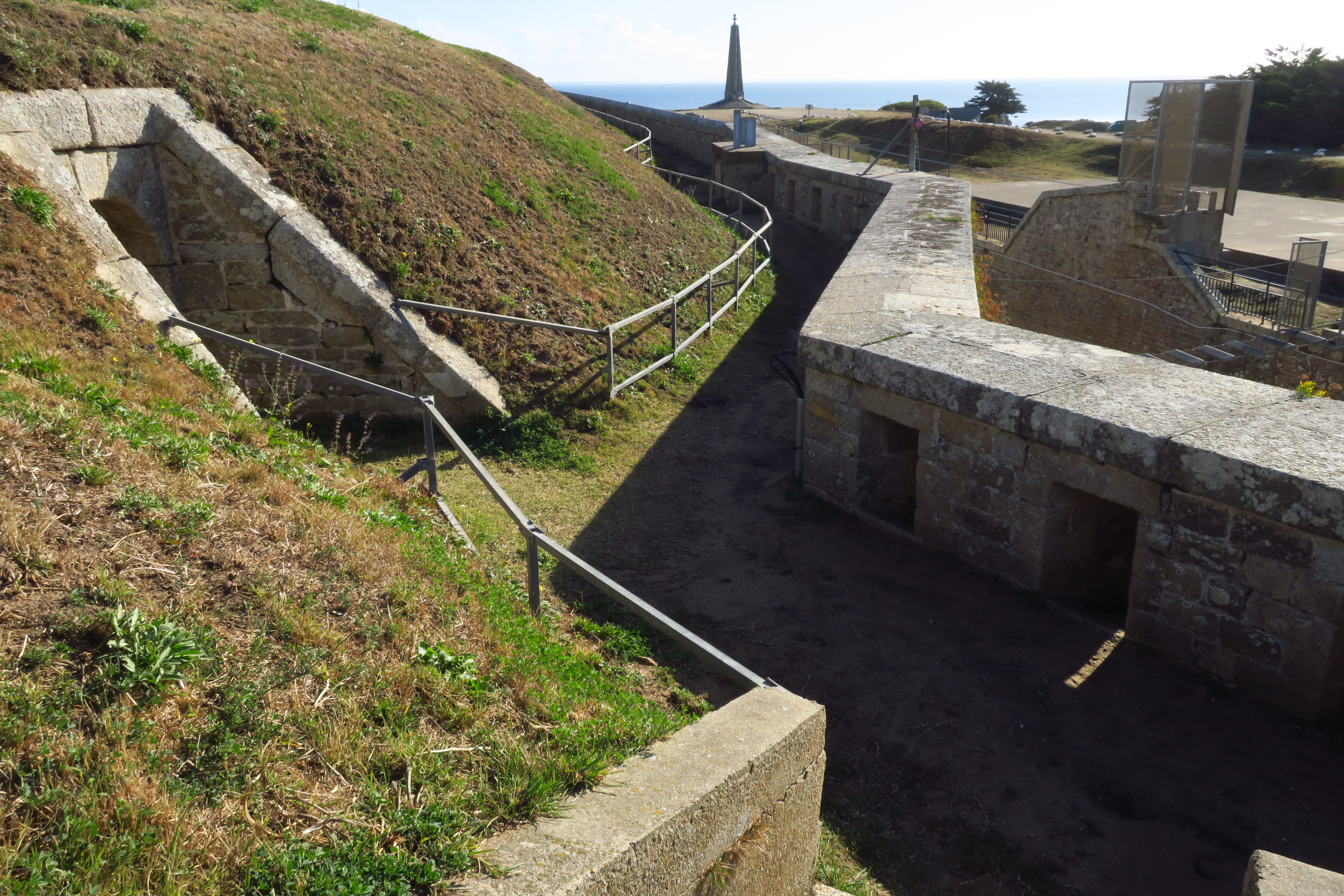 Saint-Pierre-Quiberon, fort de Penthièvre, enceinte, parapets à la jonction de la face sud du redan et de la branche sud-ouest.Immatriculation