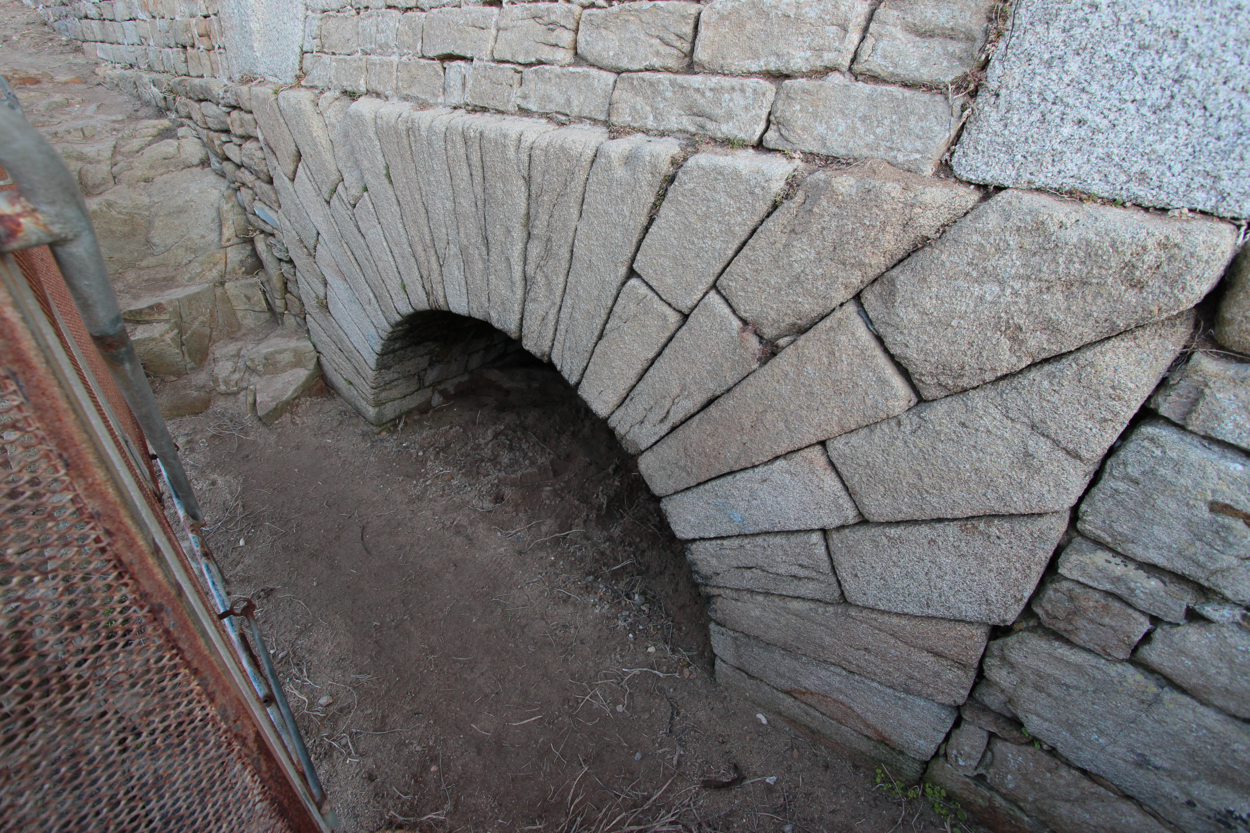 Saint-Pierre-Quiberon, fort de Penthièvre, enceinte, arc sous le créneau de pied du front sud-ouest.Immatriculation
