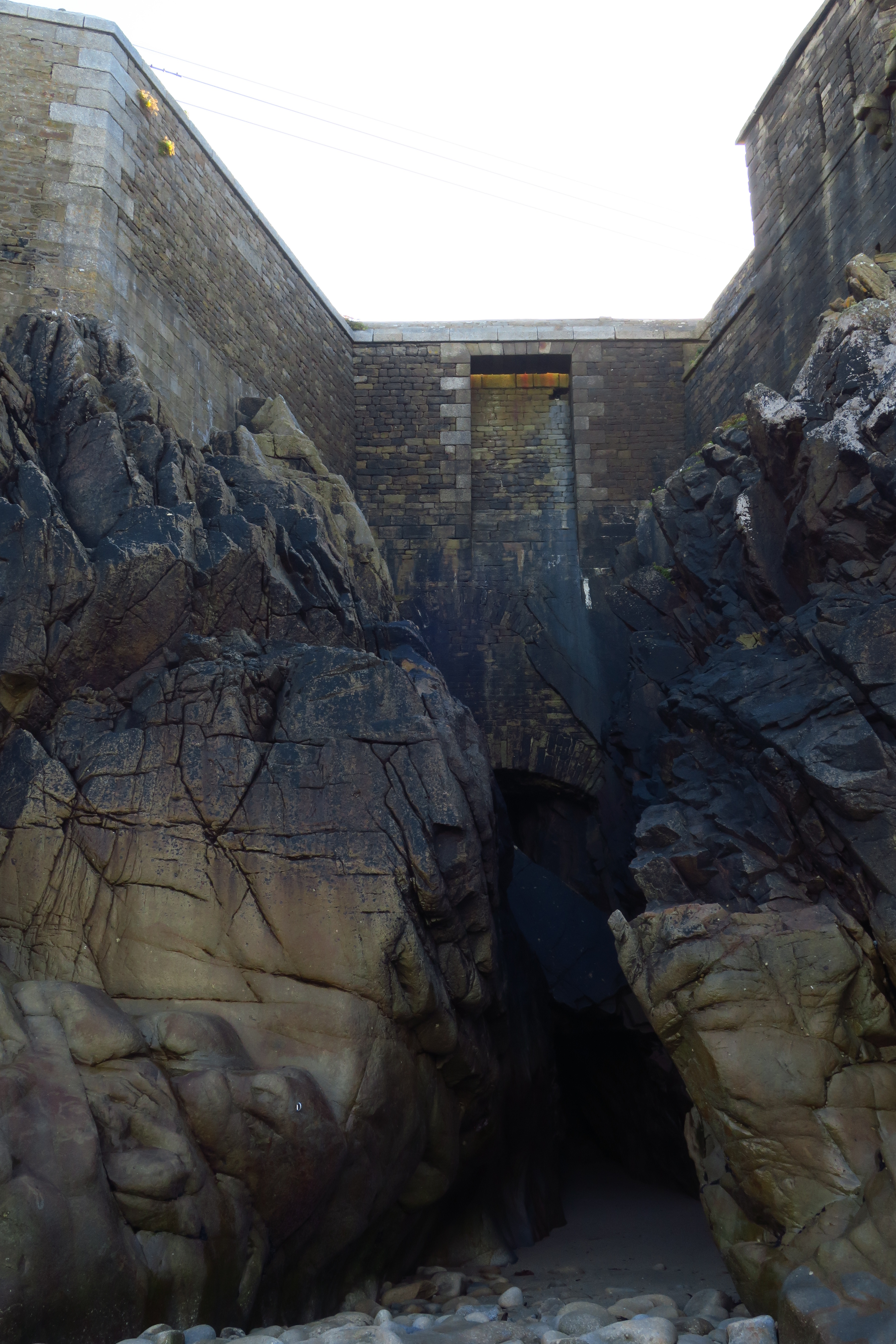 Saint-Pierre-Quiberon, fort de Penthièvre, enceinte, créneau de pied de la jonction du réduit et du front nord-est.Immatriculation