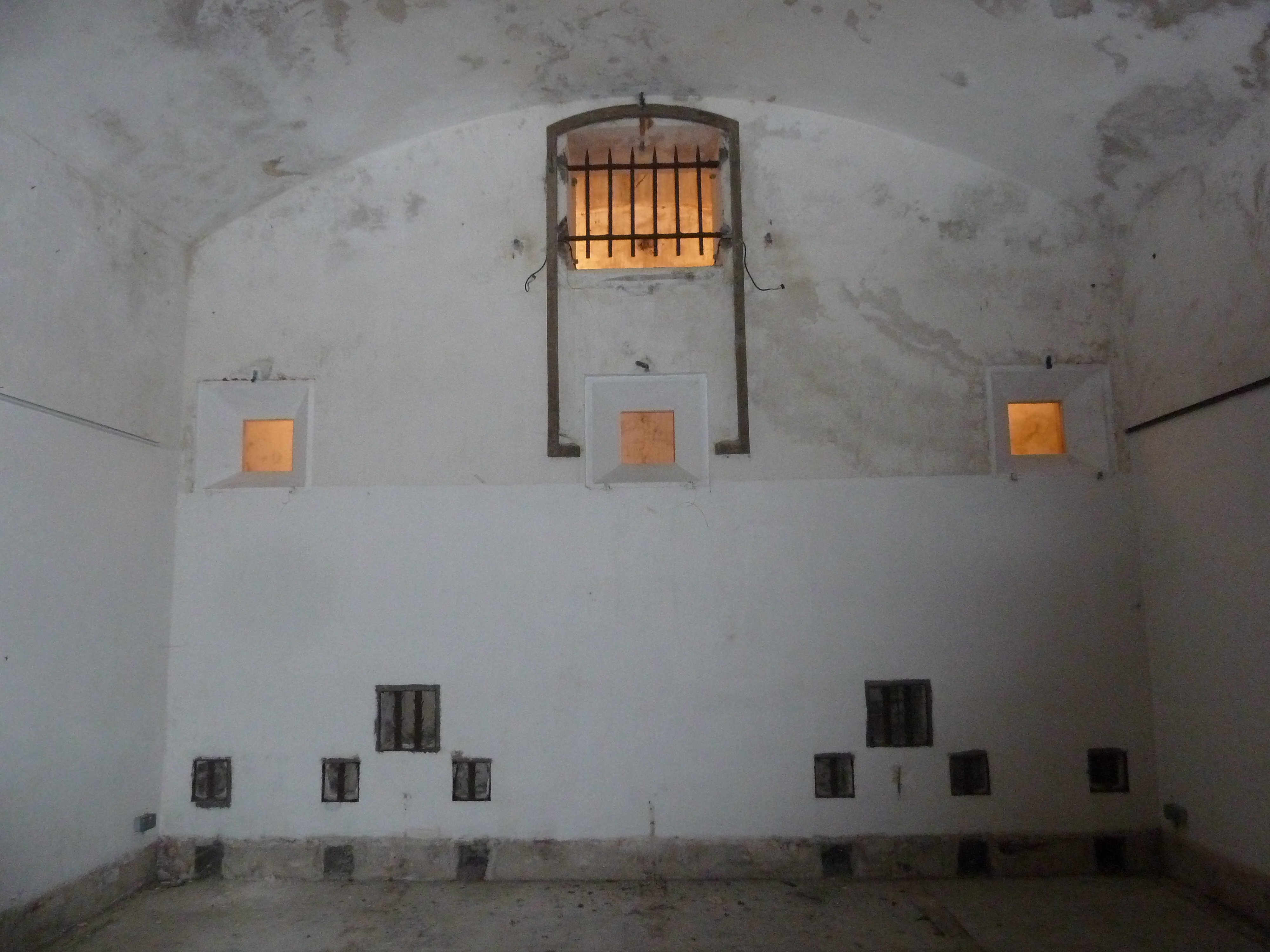 Le Palais, citadelle, magasin à poudre de l'Enveloppe, chambre de stockage, aérations et créneaux à lampes.Immatriculation