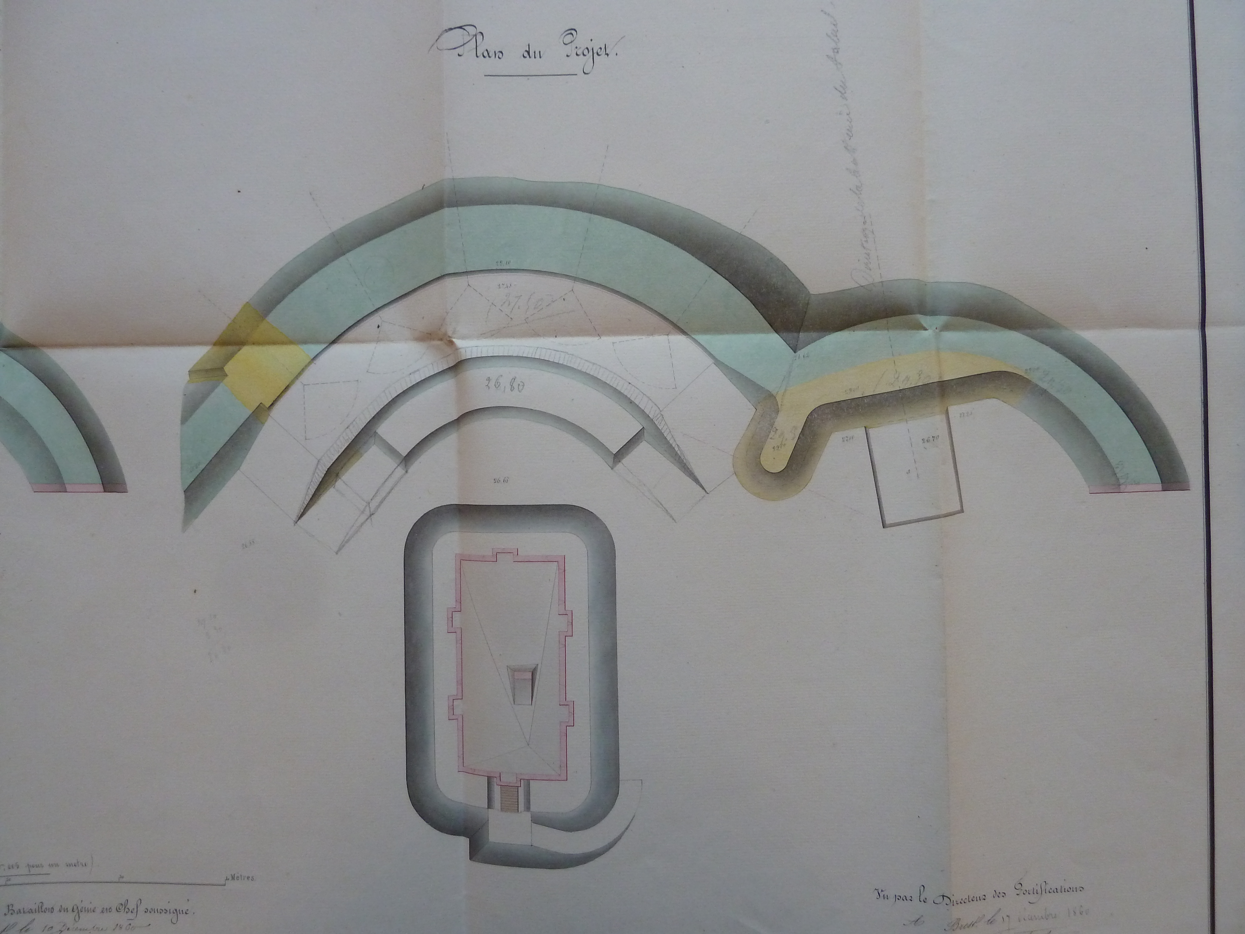1 VH 1475. Place de Port-Louis, feuille n° 4 des projets pour 1861-1862, organiser la batterie du Gripp pour le nouvel armement, 10 décembre 1860.Immatriculation