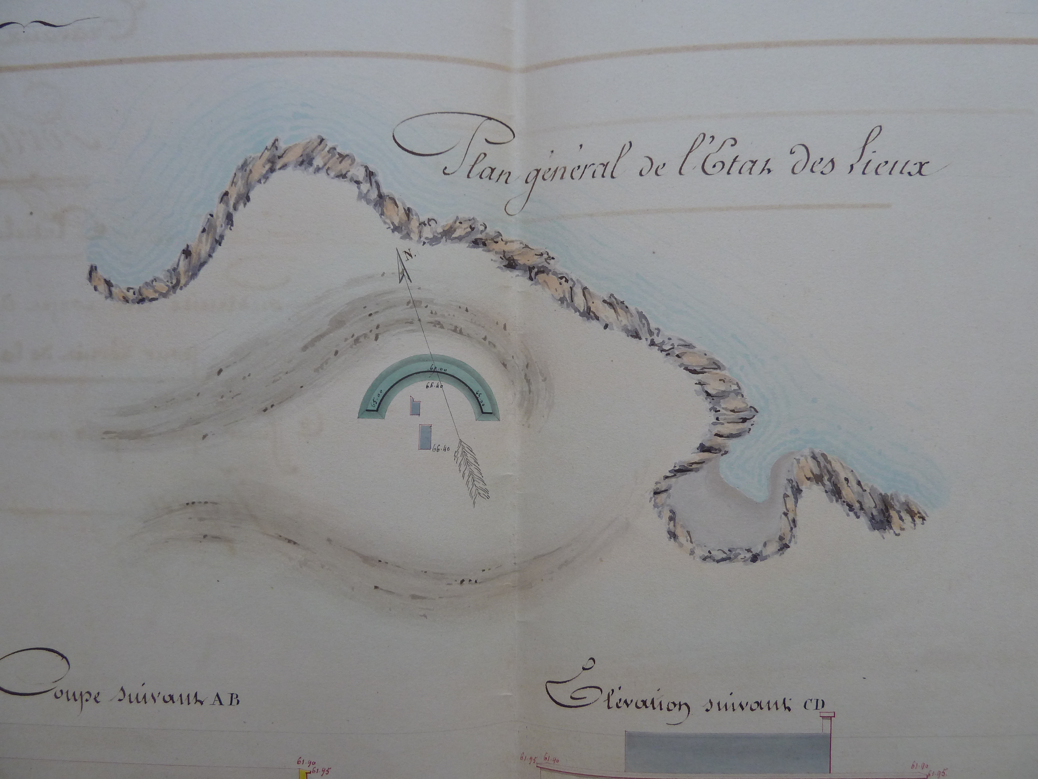 Service historique de la Défense, département Armée de Terre, Vincennes. Archives du Génie ; Article 8, Places françaises et d'Algérie : 1 VH 1473, Place de Port-Louis, projets et dépenses annuels, 1835-1846. Direction du Génie de Nantes, Place de Port-Louis, feuille n° 5 des projets extraordinaires pour 1845, construire un corps de garde défensif de 30 hommes pour réduit de la batterie du Grognon, 24 décembre 1845.