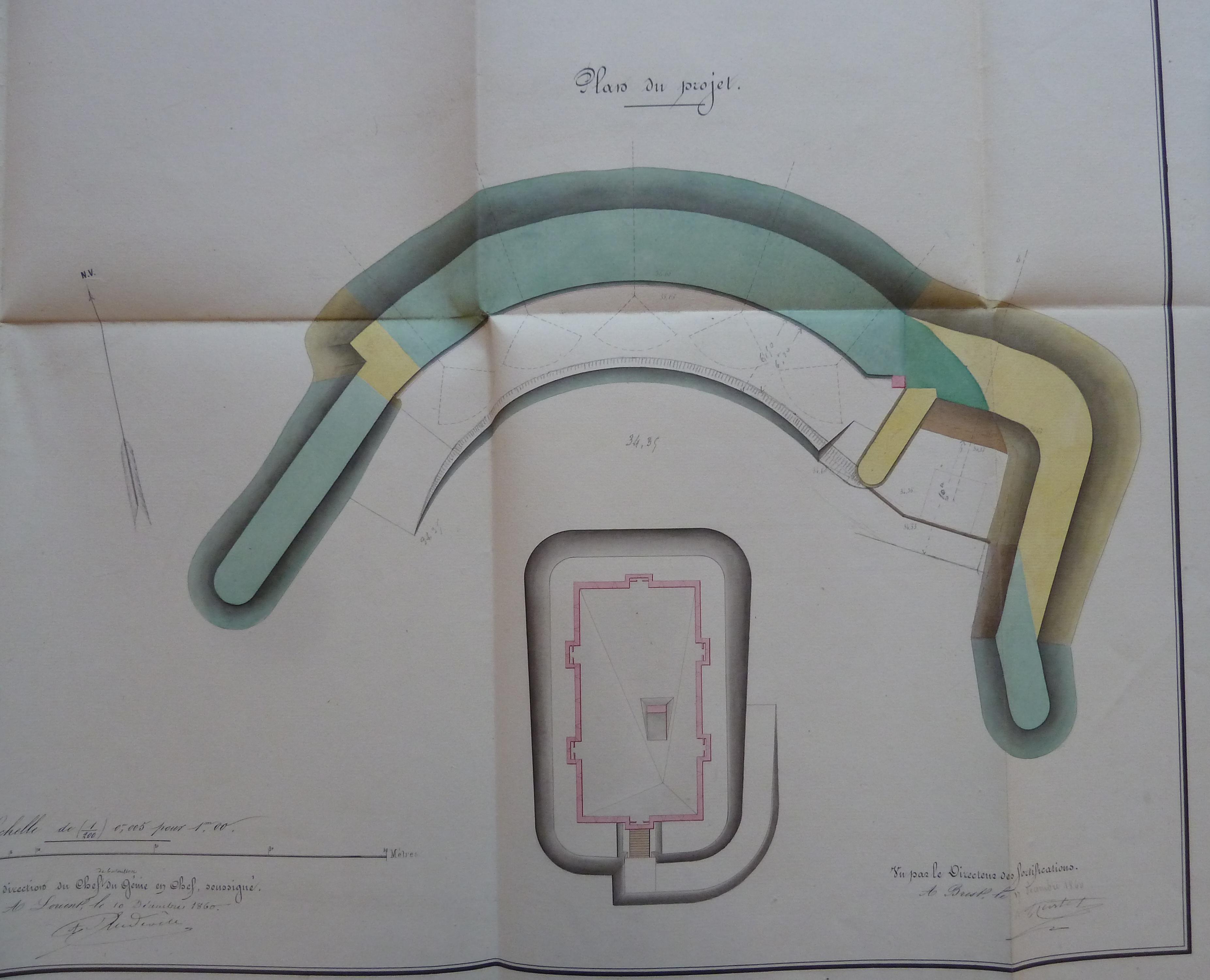 1 VH 1475. Place de Port-Louis, feuille n° 3 des projets pour 1861-1862, organiser la batterie de Grognon pour y placer le nouvel armement, 10 décembre 1860.Immatriculation