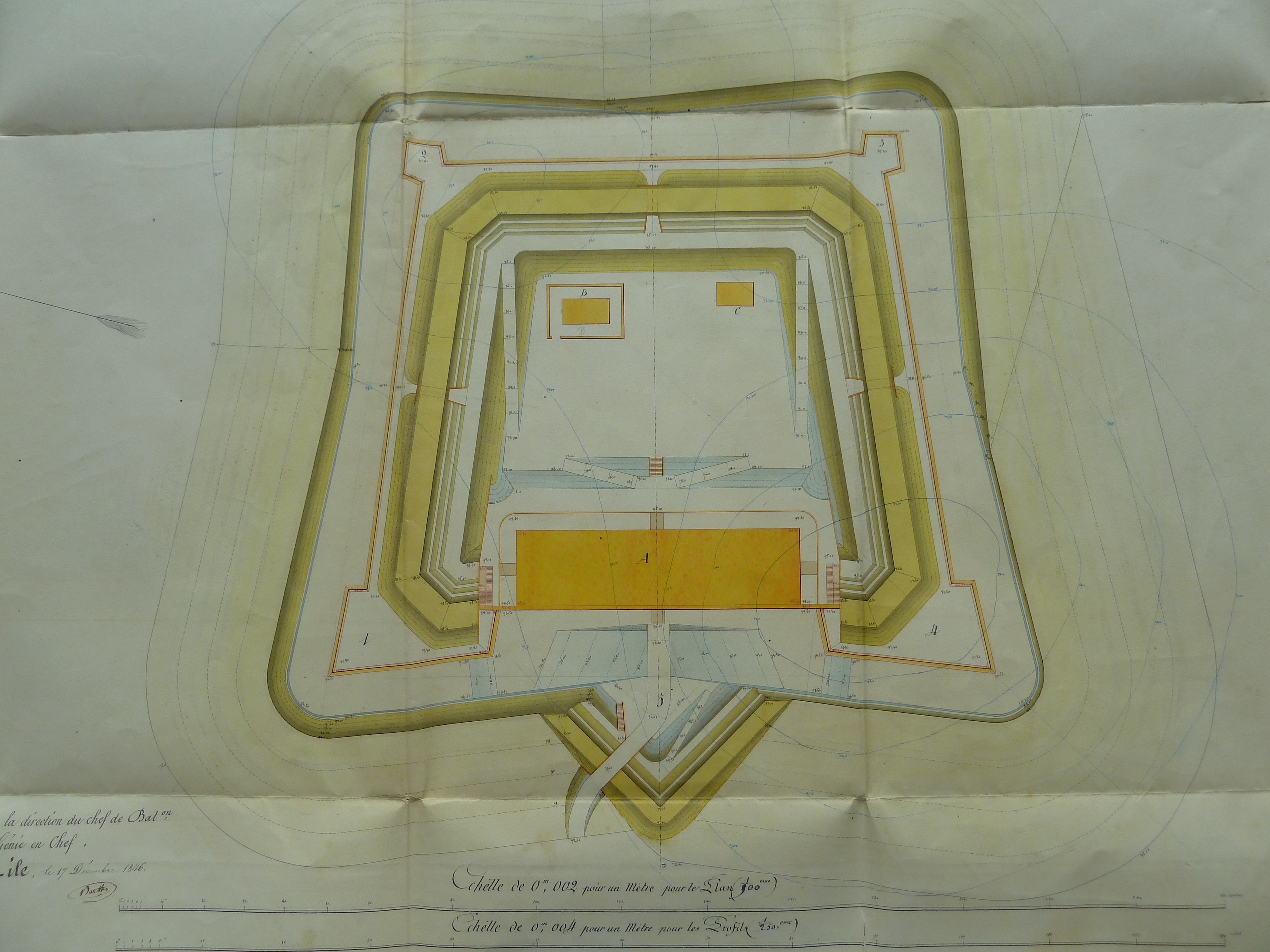 Service historique de la Défense, département Armée de Terre, Vincennes. Archives du Génie ; Article 8, Places françaises et d'Algérie : 1 VH 292, Place de Belle-Île-en-Mer, projets et dépenses annuels, 1847. Direction du Génie de Nantes, Place de Belle-Ile, feuille des projets extraordinaires pour 1847, fort central de l'Ile d'Hoedic, 17 décembre 1846.