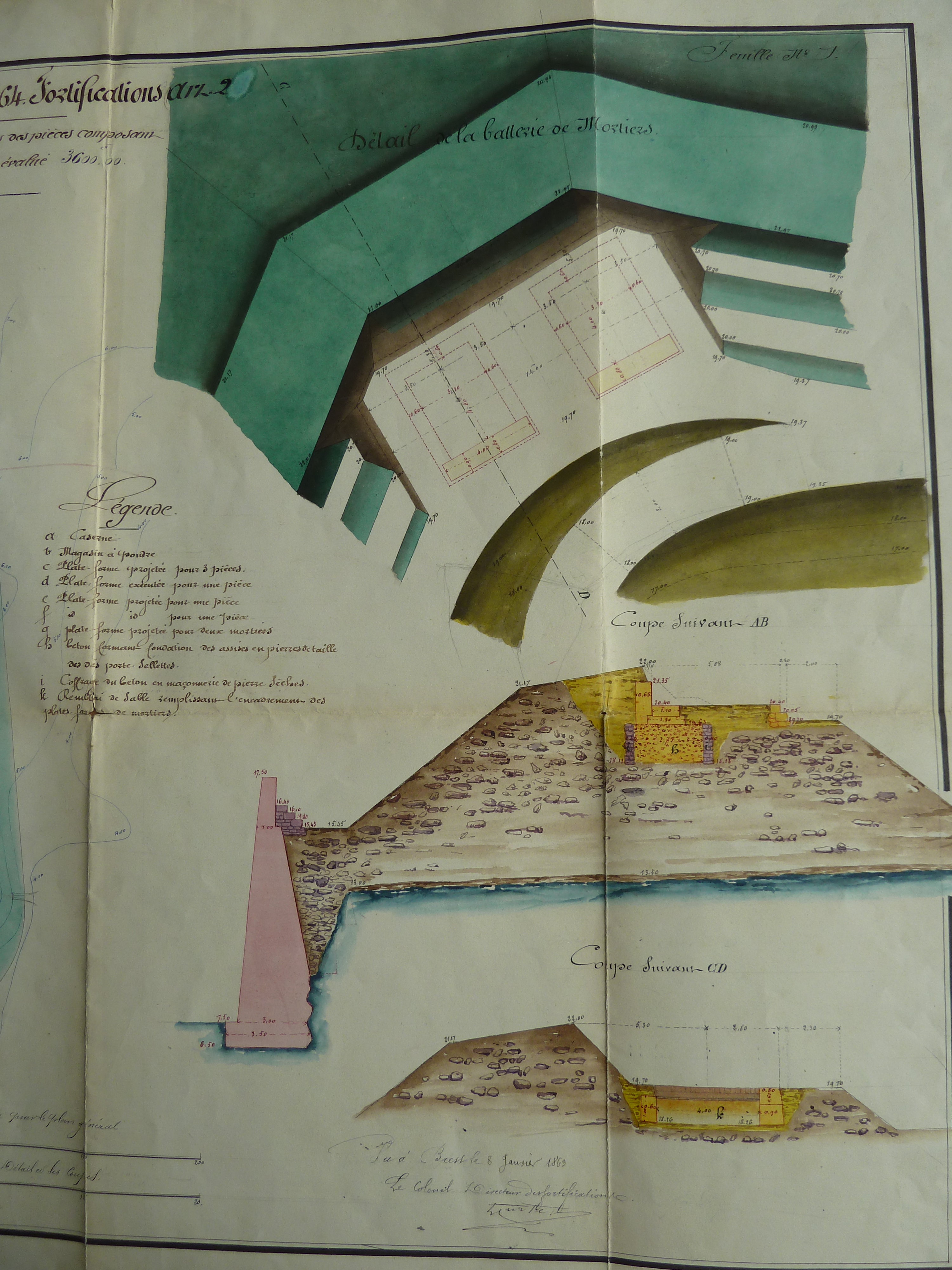 1 VH 881. Place de Houat-Hoedic, feuille n° 1 des projets pour 1863-1864, terminer l'établissement des plates-formes des pièces composant l'armement du fort d'Hoedic, 31 décembre 1862.Immatriculation