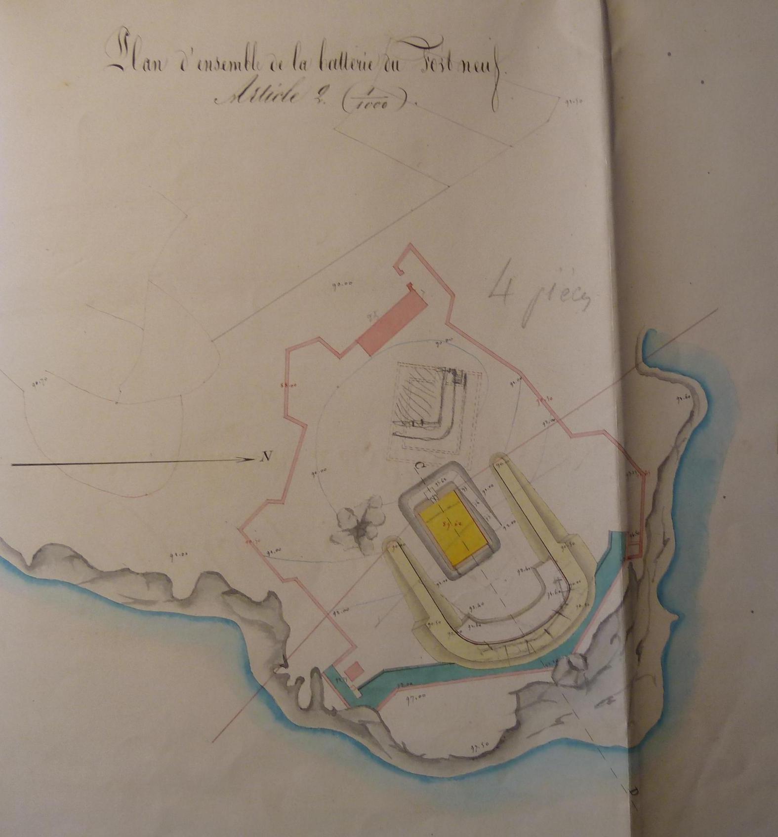 Service historique de la Défense, département Armée de Terre, Vincennes. Archives du Génie ; Article 8, Places françaises et d'Algérie : 1 VH 1518, Place de Quiberon, projets et dépenses annuels, 1847-1874. Place de Quiberon, projets pour 1847, batteries de Beg-el-Lan et du Fort-Neuf, 27 avril 1847.